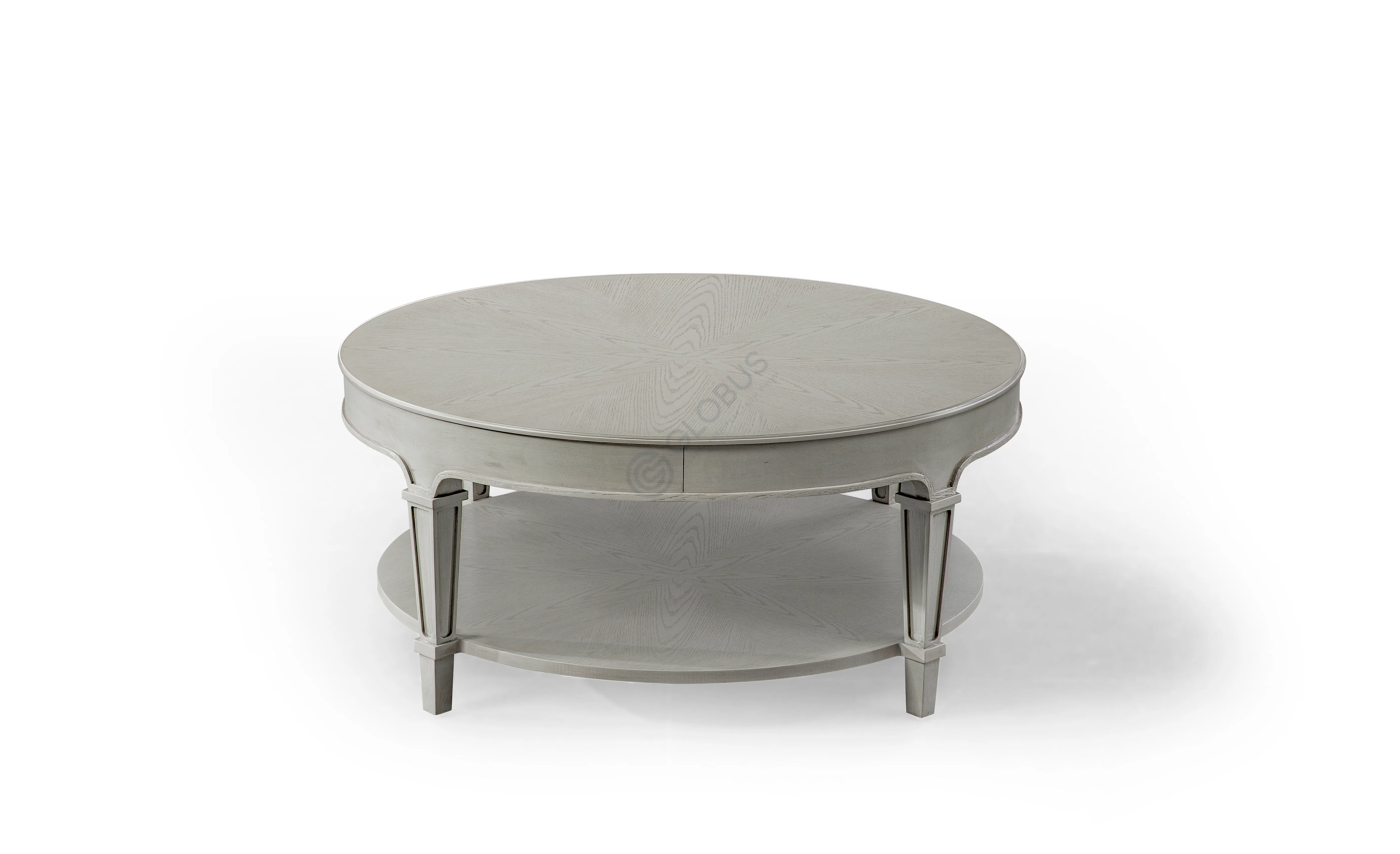 Угловой столик в духе американской классики с аккуратным неоклассическим силуэтом становится элегантным акцентом в гостиной. Круглая столешница на стройных фигурных опорах смотрится легко и пропорционально, подчеркивая грамотную геометрию предмета.
