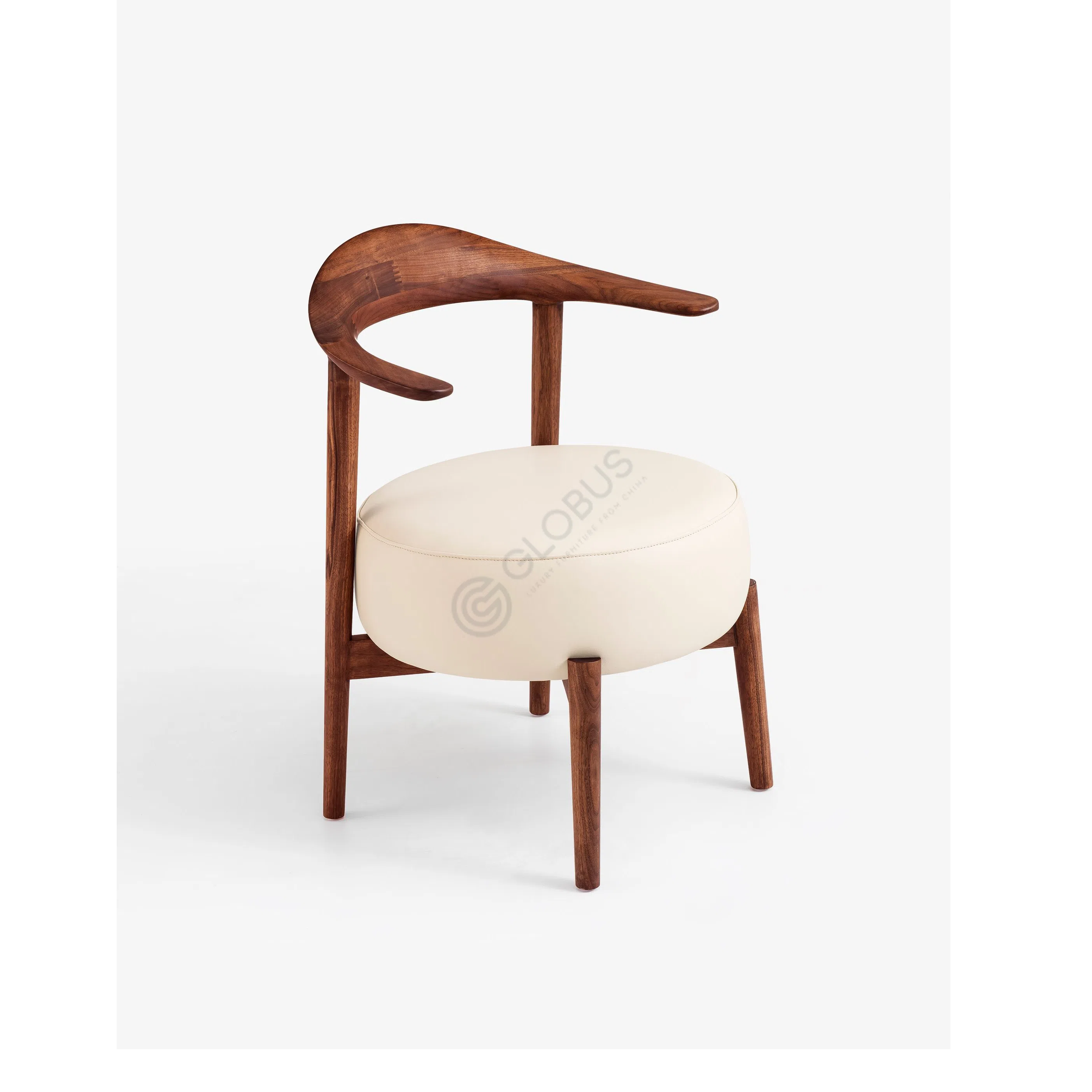 Сиденье представляет собой объемную подушку округлой формы, обтянутую приятным на ощупь текстилем. Его фактура добавляет визуальной мягкости и приглашает насладиться моментом отдыха. Контраст между твердостью деревянного основания и мягкостью сиденья создает баланс, который подчеркивает продуманность каждой детали.