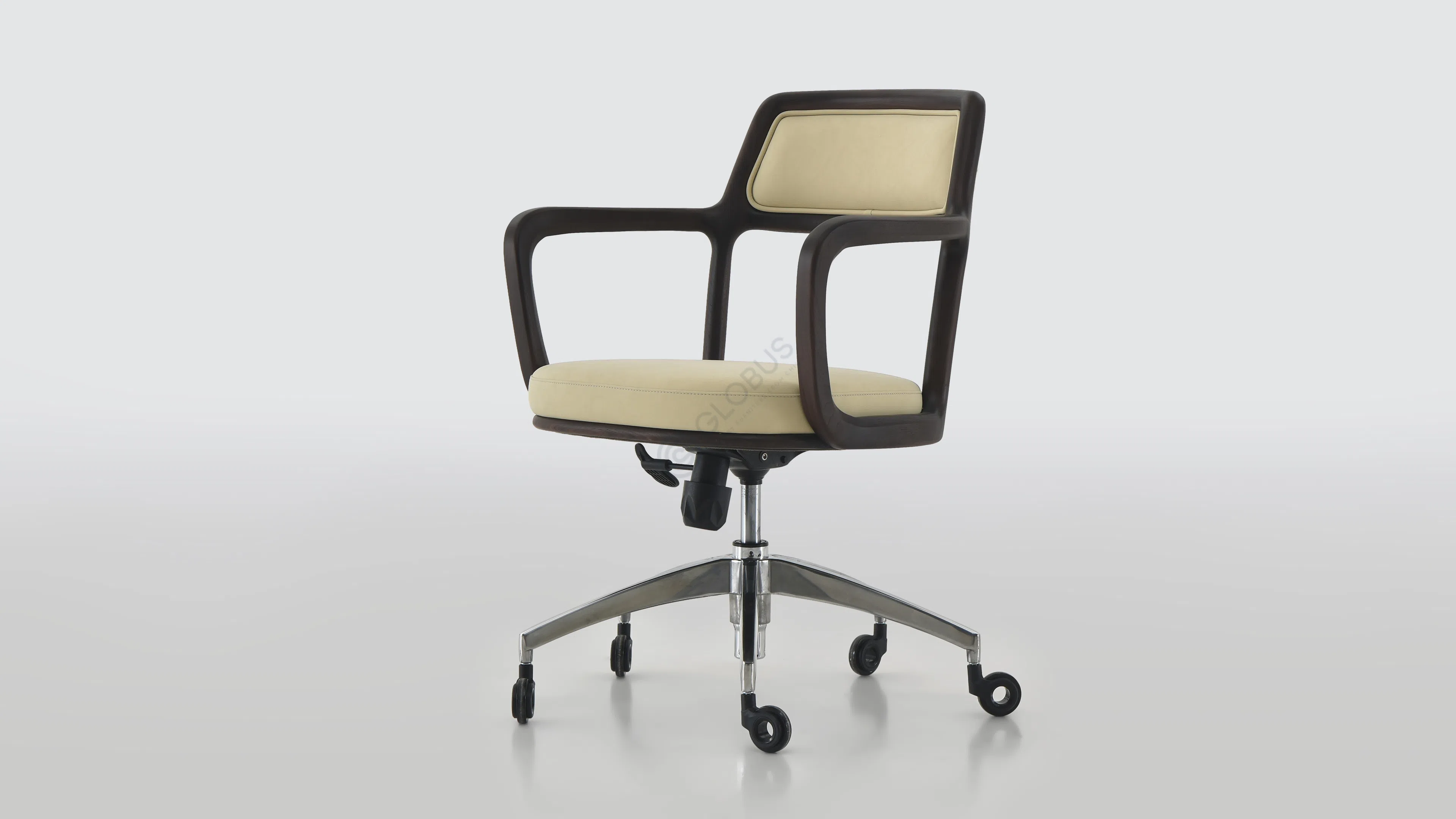 Каркас выполнен из отборного натурального дерева, демонстрируя богатство текстуры и теплоту природного материала. Плавные изгибы подлокотников и ножек подчеркивают мастерство исполнения и внимание к деталям. Сиденье и спинка обиты высококачественной экокожей на микрофибровой основе, что придает поверхности особую мягкость и приятные тактильные ощущения, сохраняя при этом практичность и долговечность покрытия.