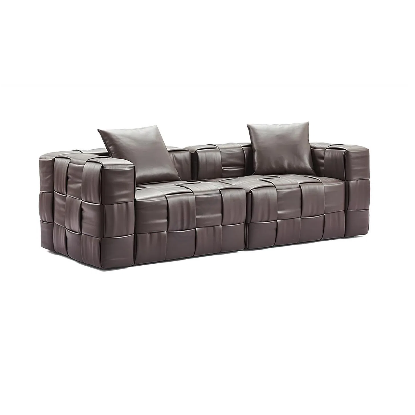 Кресло современного стиля сразу привлекает внимание необычным дизайном. Его обивка создана из текстиля, имитирующего плетение крупных блоков, что делает модель ярким акцентом в интерьере. Лаконичные линии и объемная форма гармонично сочетаются, подчеркивая премиальность изделия.