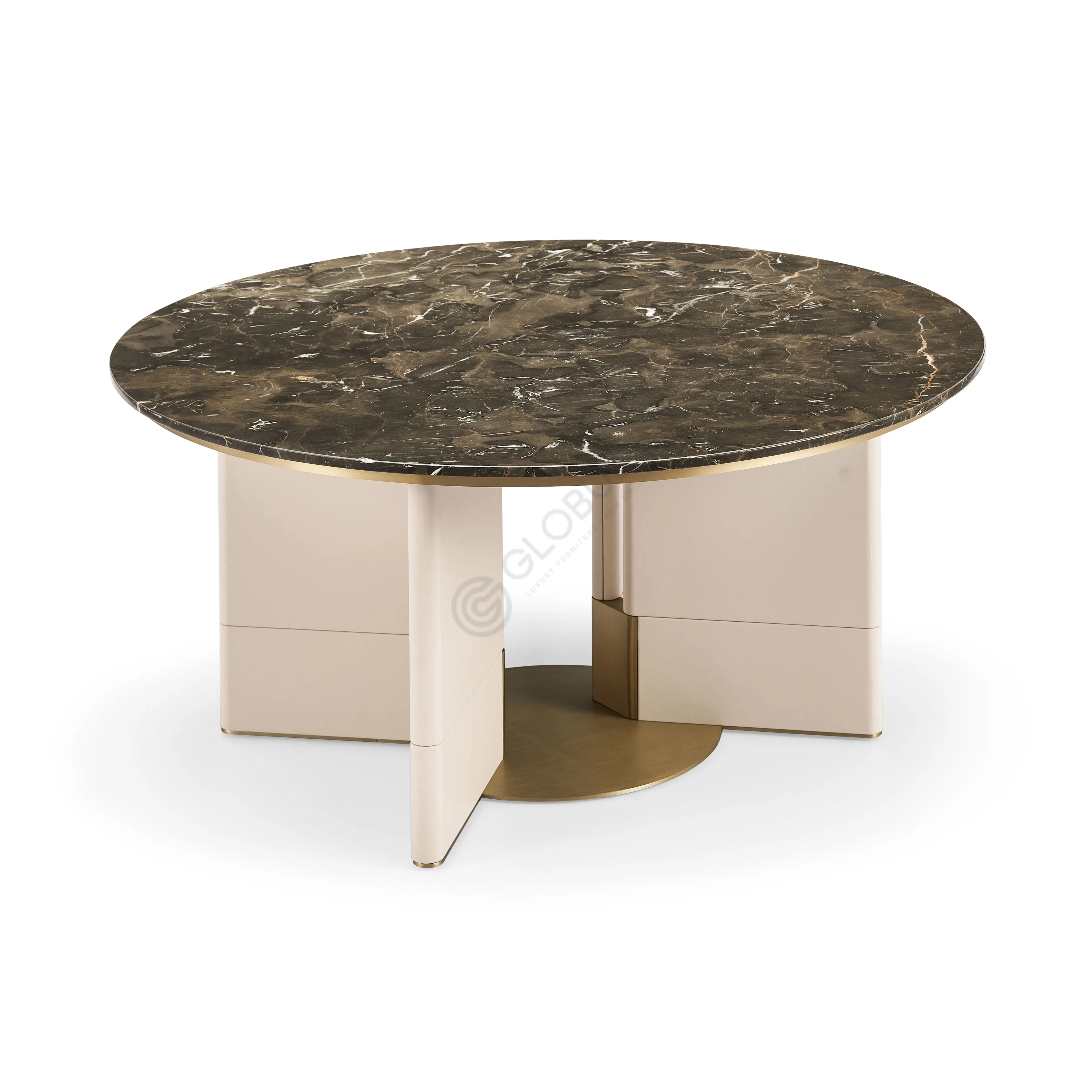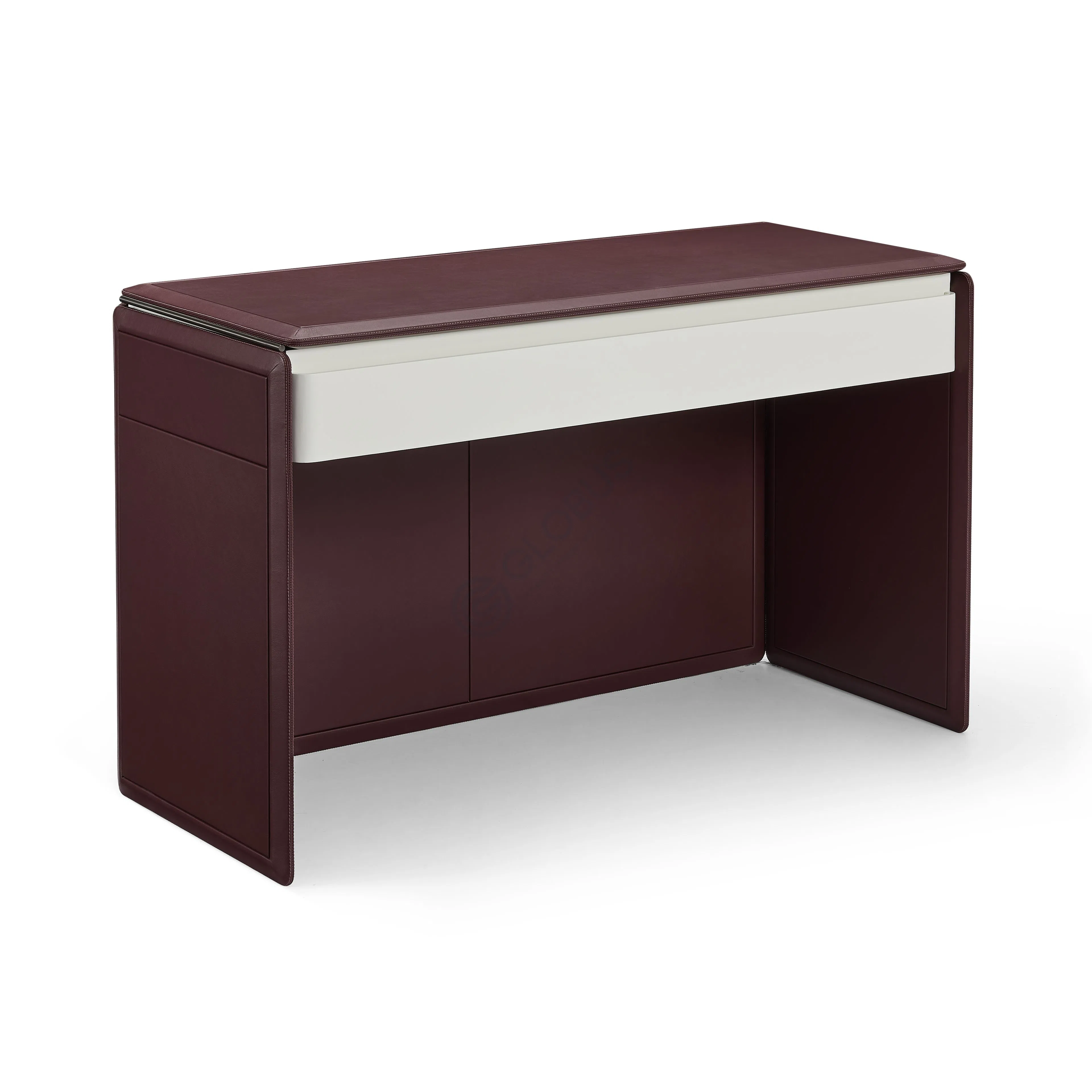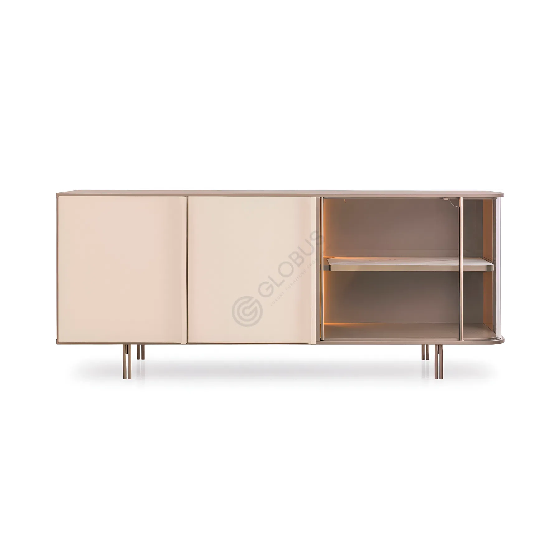 Комод сочетает благородство нержавеющей стали и мягкость экокожи на микрофибре. Каркас покрыт износостойким кожзаменителем глубокого бордового оттенка, фасады оформлены в светло-молочном цвете. Лаконичные линии и отсутствие ручек создают сдержанную эстетику минимализма.