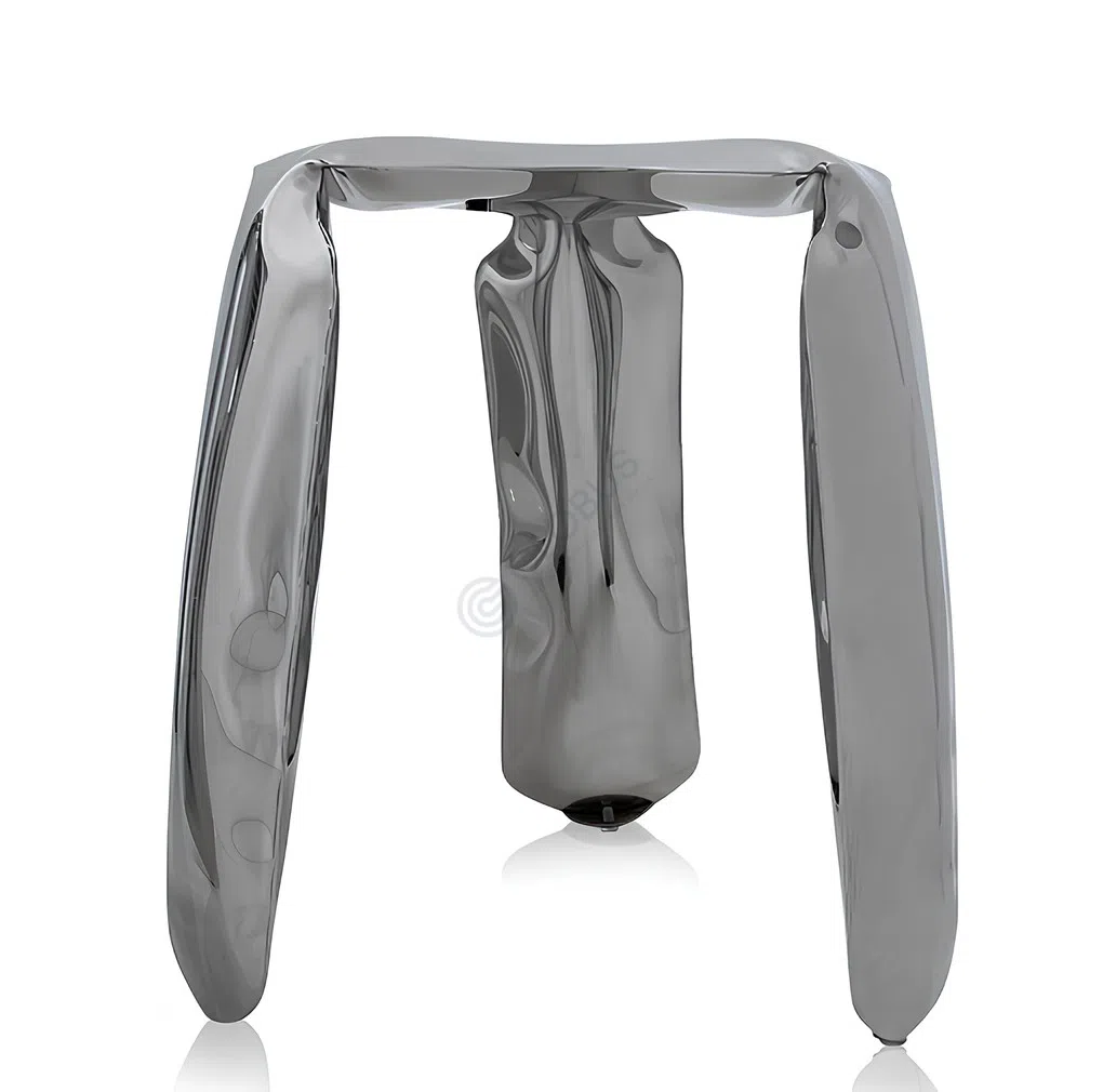 Этот барный стул представляет собой не просто предмет мебели, но и подлинный арт-объект. Созданный из высококачественной нержавеющей стали, он обладает потрясающей поверхностью с эффектом иризации, которая улавливает свет и переливается оттенками глубокого синего, зеленого и фиолетового. Эта динамичная отделка подчеркивает плавные, органичные линии его силуэта, придавая ему исключительную визуальную привлекательность.