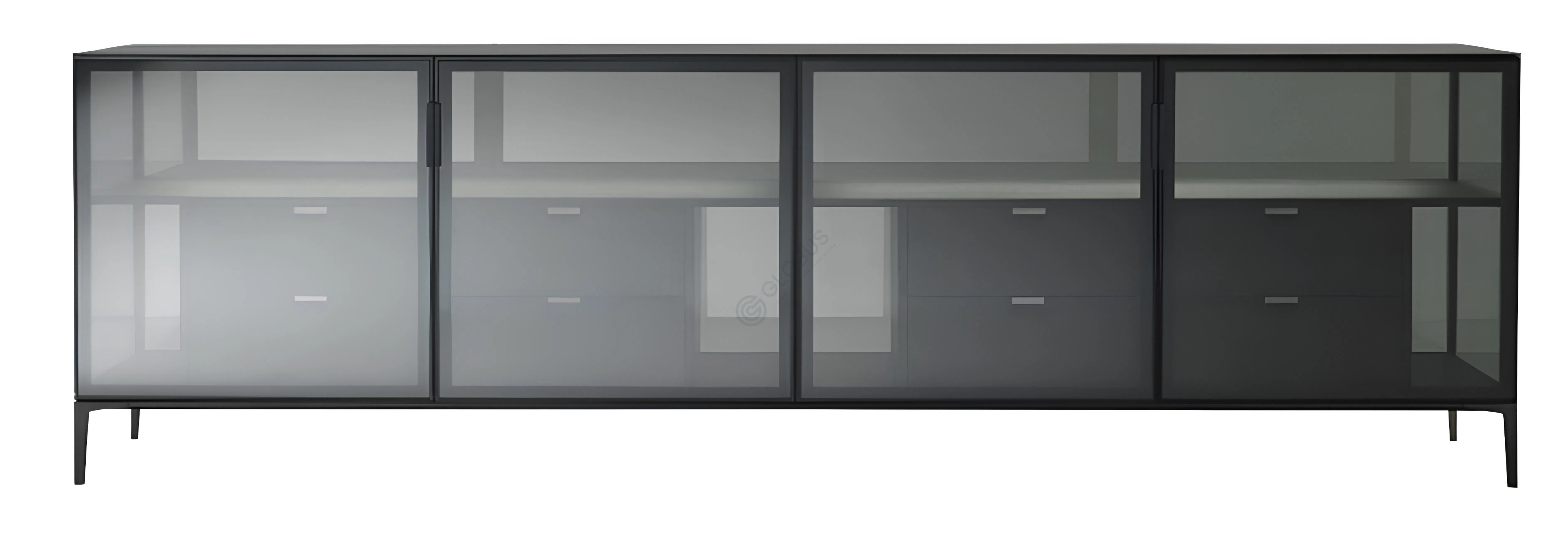 Конструкция стеллажа выполнена с применением высококачественного шпона и прочной фанеры, которые формируют надежную основу и добавляют теплую текстуру. Закаленное стекло дверцы и полок обеспечивает безопасность и позволяет беспрепятственно любоваться выставленными объектами. Алюминиевый профиль подчеркивает строгие линии и придает изделию необходимую жесткость и современный вид.