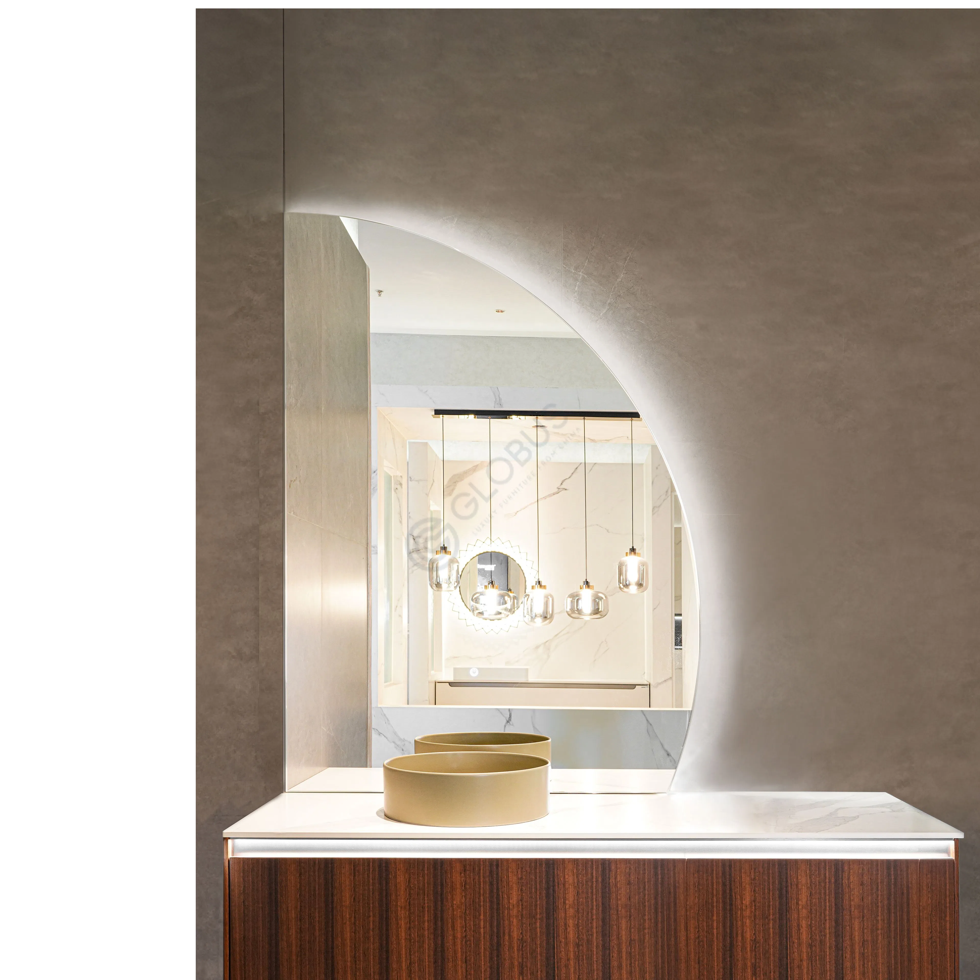 Фасад изделия выполнен из высококачественной фанеры, облицованной шпоном с выразительной древесной текстурой. Вертикальное расположение волокон придает поверхности динамичность и глубину, становясь притягательным акцентом. Столешница, изготовленная из прочного спеченного камня, обладает безупречной гладкостью и устойчивостью к воздействию влаги и перепадов температур, что делает ее идеальным выбором для ванной.