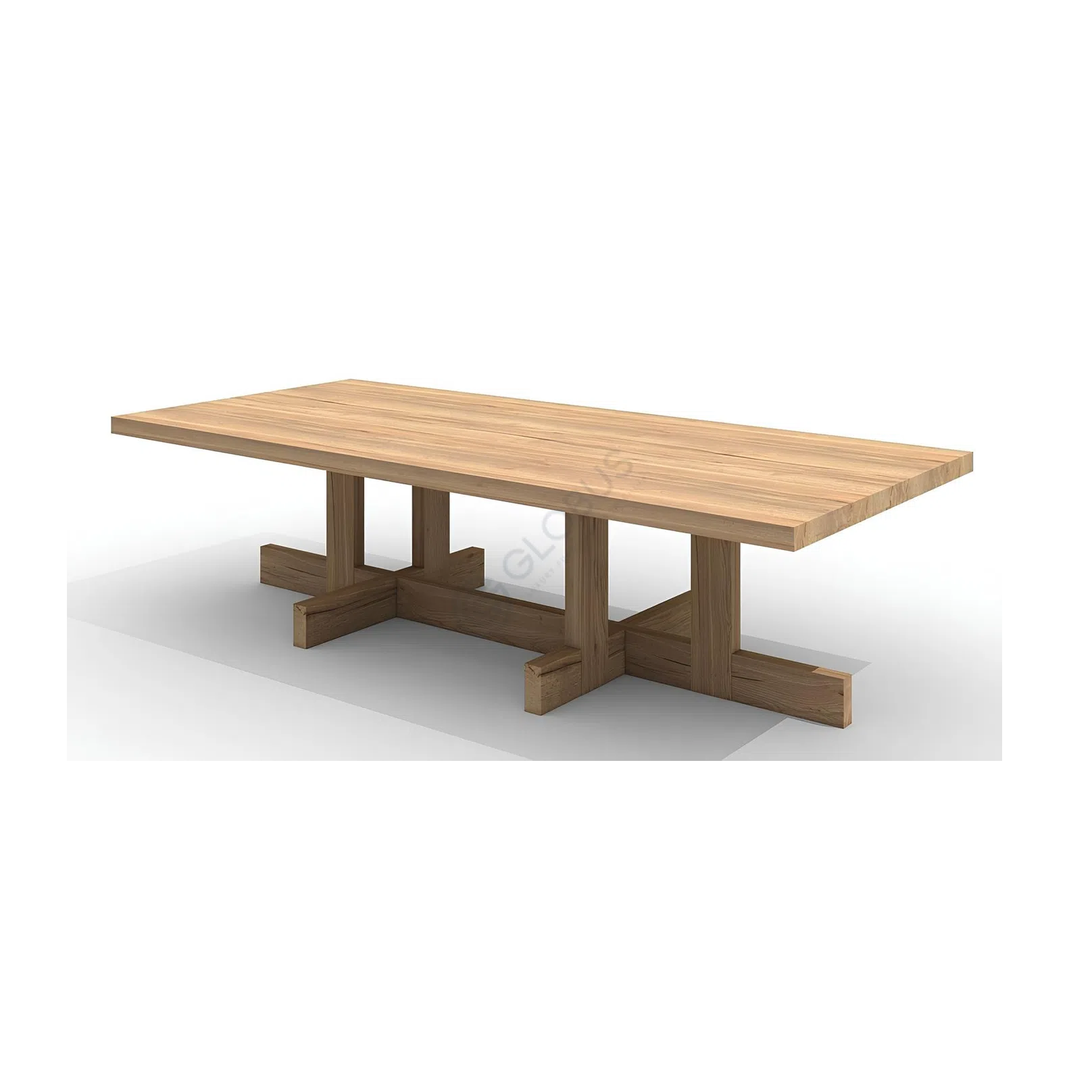 Изысканный обеденный стол из натурального дерева в экостиле органично вписывается в современный интерьер кухни или столовой. Естественная текстура материала подчеркивает теплоту помещения, создавая уютную атмосферу для семейных обедов и дружеских встреч. Прямые линии и лаконичный дизайн стола гармонично сочетают в себе функциональность и эстетику, делая его идеальным элементом для вашего дома.