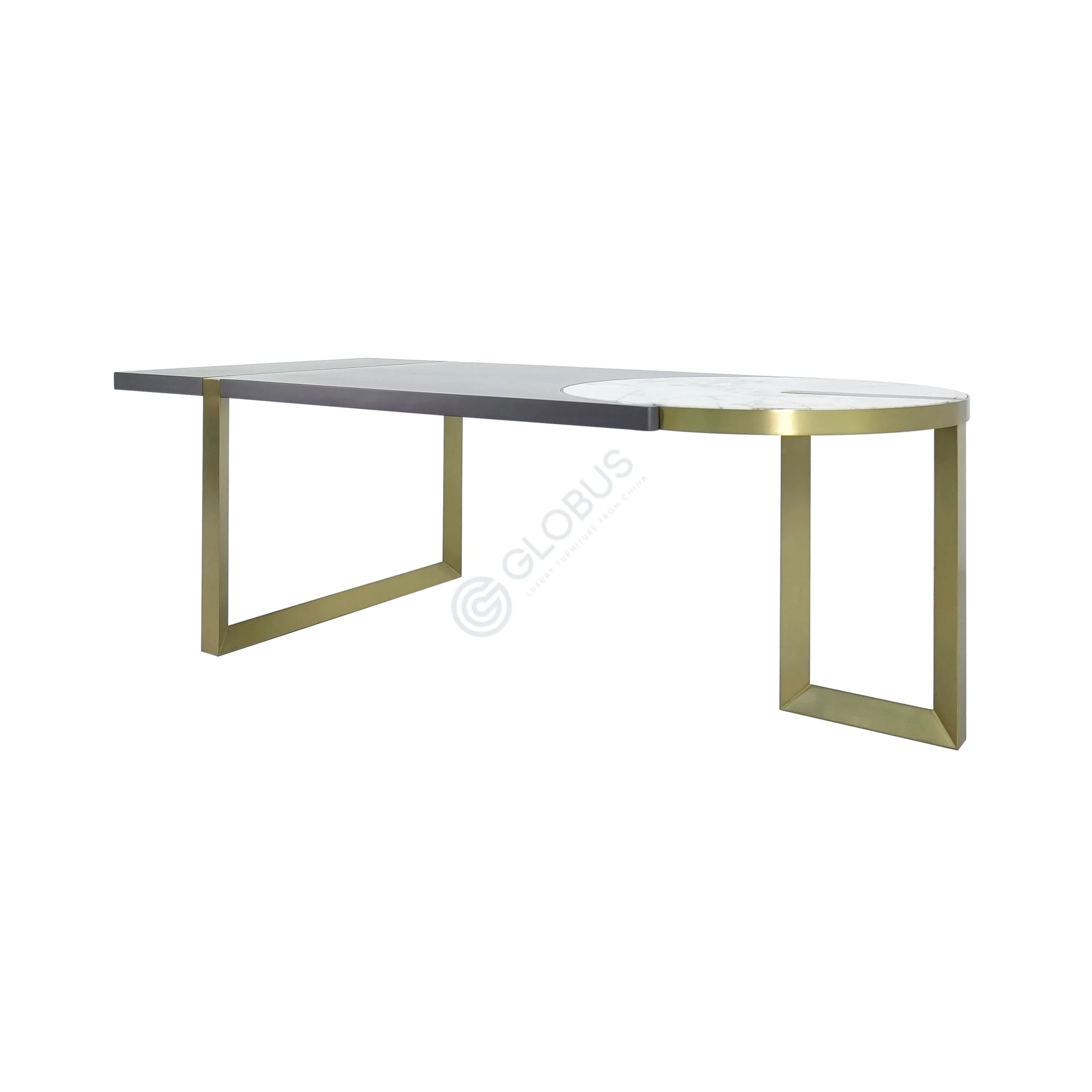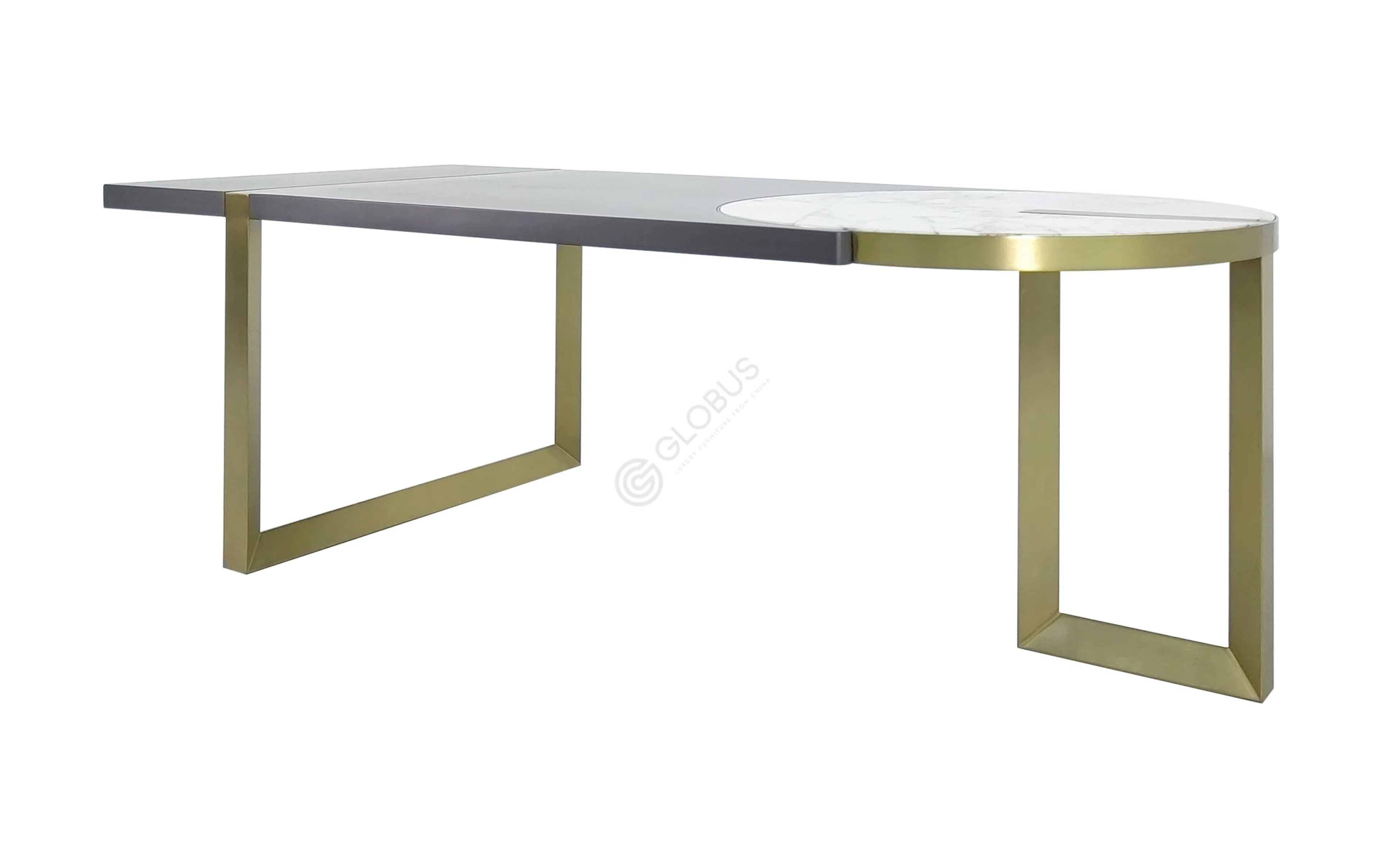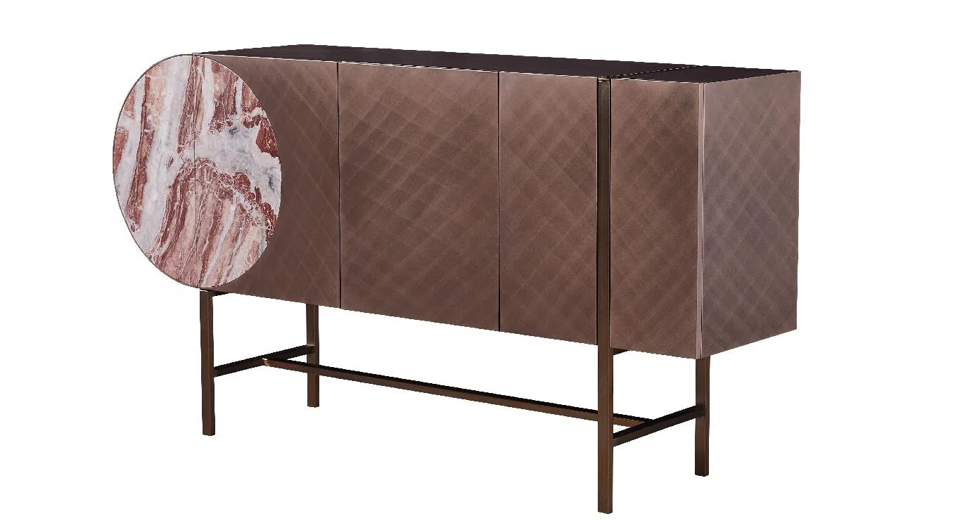 Эта ТВ тумба сочетает в себе утонченность современных форм и природную красоту натуральных материалов. Ее фронтальная часть выделяется элегантным акцентом из мрамора, который привлекает внимание текстурой и уникальным рисунком камня. Металлический каркас с лаконичными линиями добавляет изделию легкости и визуальной невесомости.