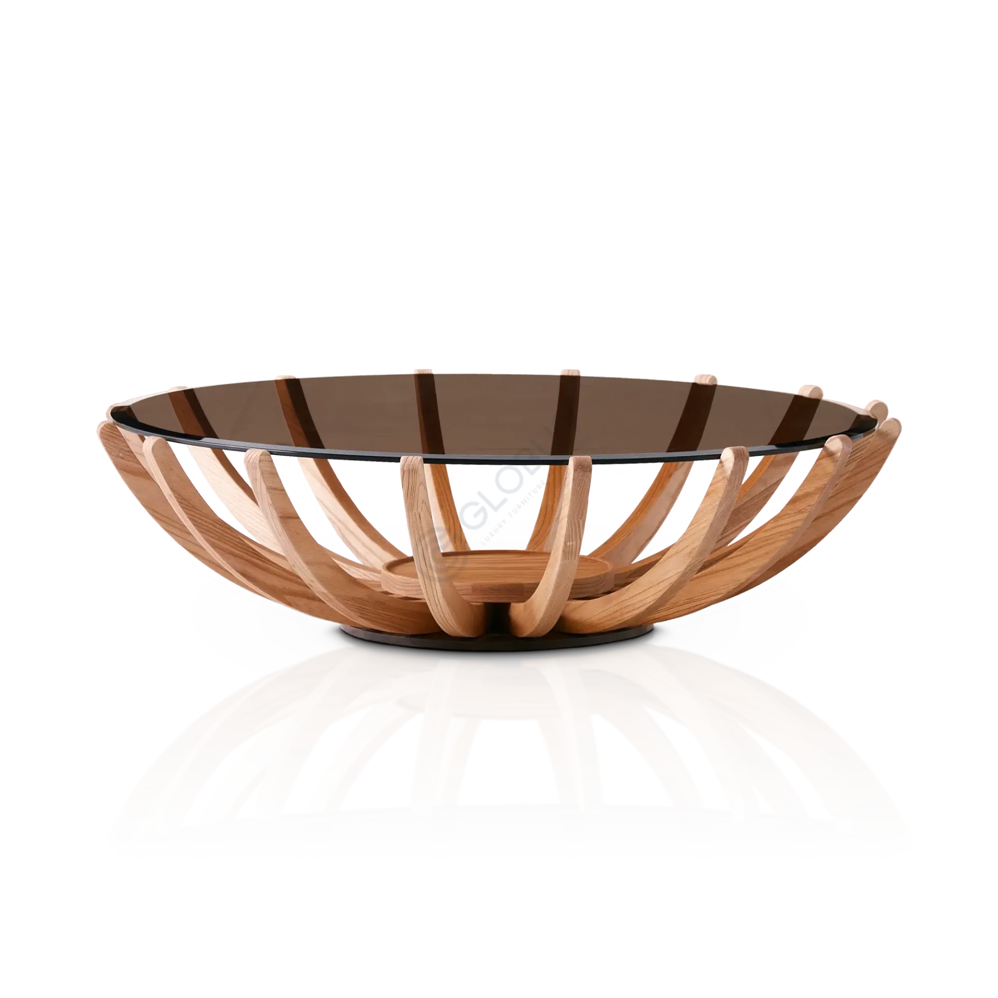 Угловой столик для гостиной, выполненный в современном экостиле, привлекает внимание сочетанием натурального дерева, углеродистой стали и стекла. Элегантная опора из стали обеспечивает надежность и устойчивость, а мягкие линии деревянных элементов создают теплую атмосферу. Стеклянная поверхность придает модели изящность, а необычный дизайн подчеркивает уникальность предмета интерьера. Этот функциональный и стильный столик гармонично дополнит любую гостиную, внося в нее нотки современной утонченности и природной эстетики.
