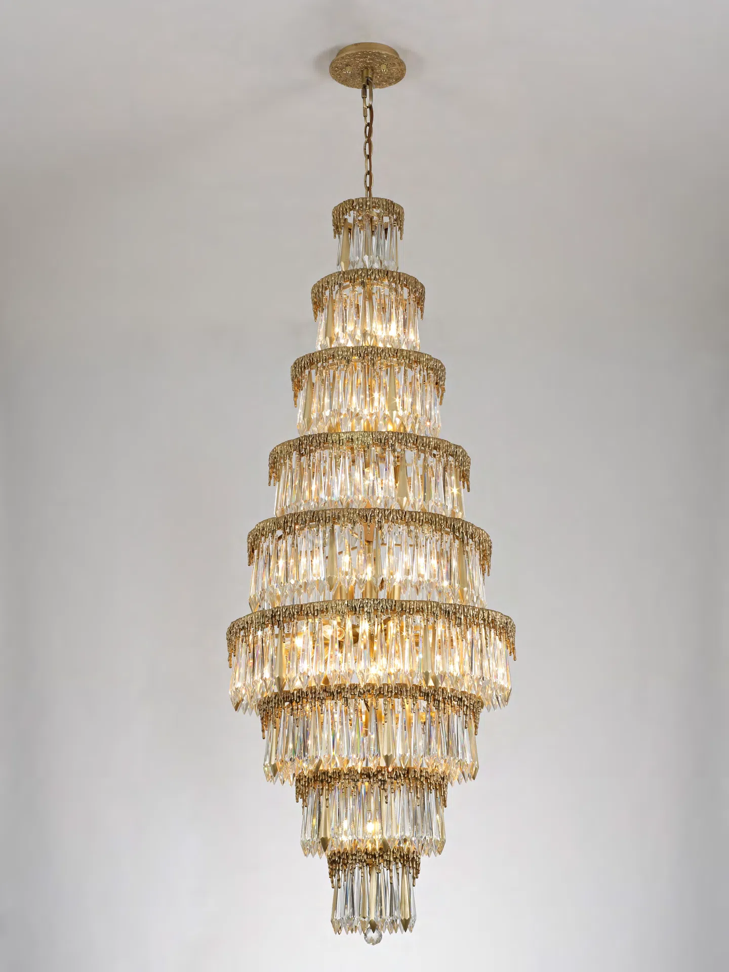 Эта изысканная люстра, выполненная из латуни и кристалла К9, станет настоящим украшением вашего интерьера. Ее современный дизайн с элементами арт-деко идеально впишется в гостиную, спальню или столовую, добавляя нотку элегантности и роскоши. Многоуровневая конструкция и блеск кристаллов создают неповторимую игру света, наполняя пространство теплом и уютом.
