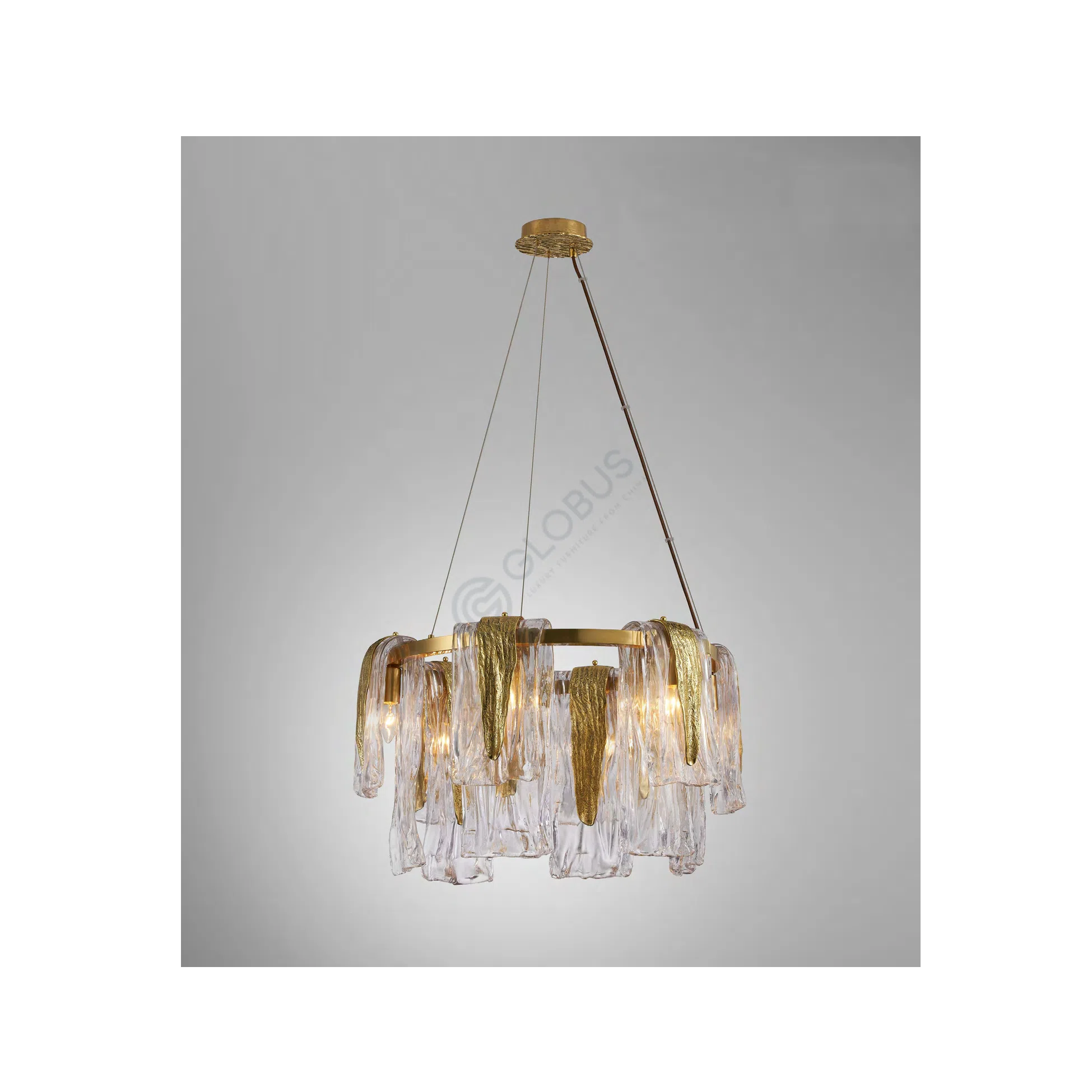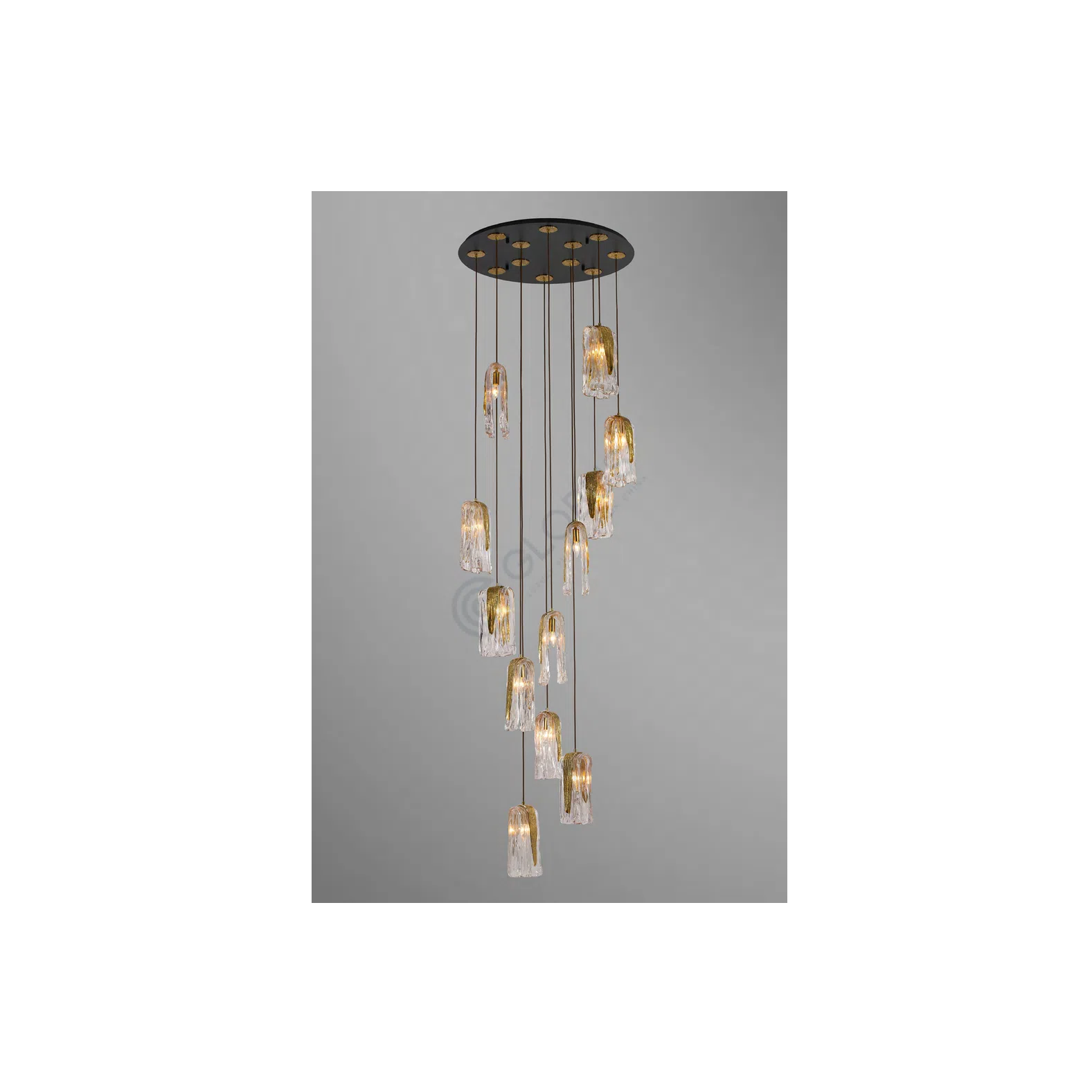 Этот подвесной светильник, выполненный в стиле модерн и арт-деко, станет изысканным акцентом в интерьере любой комнаты. Изготовленный из латуни и стекла, он сочетает в себе элегантность и современность. Прозрачные стеклянные элементы, дополненные золотистыми латунными вставками, создают уникальную игру света и тени, придавая пространству особую атмосферу. Идеально подходит для гостиной, спальни или столовой, добавляя нотку роскоши и утонченности.