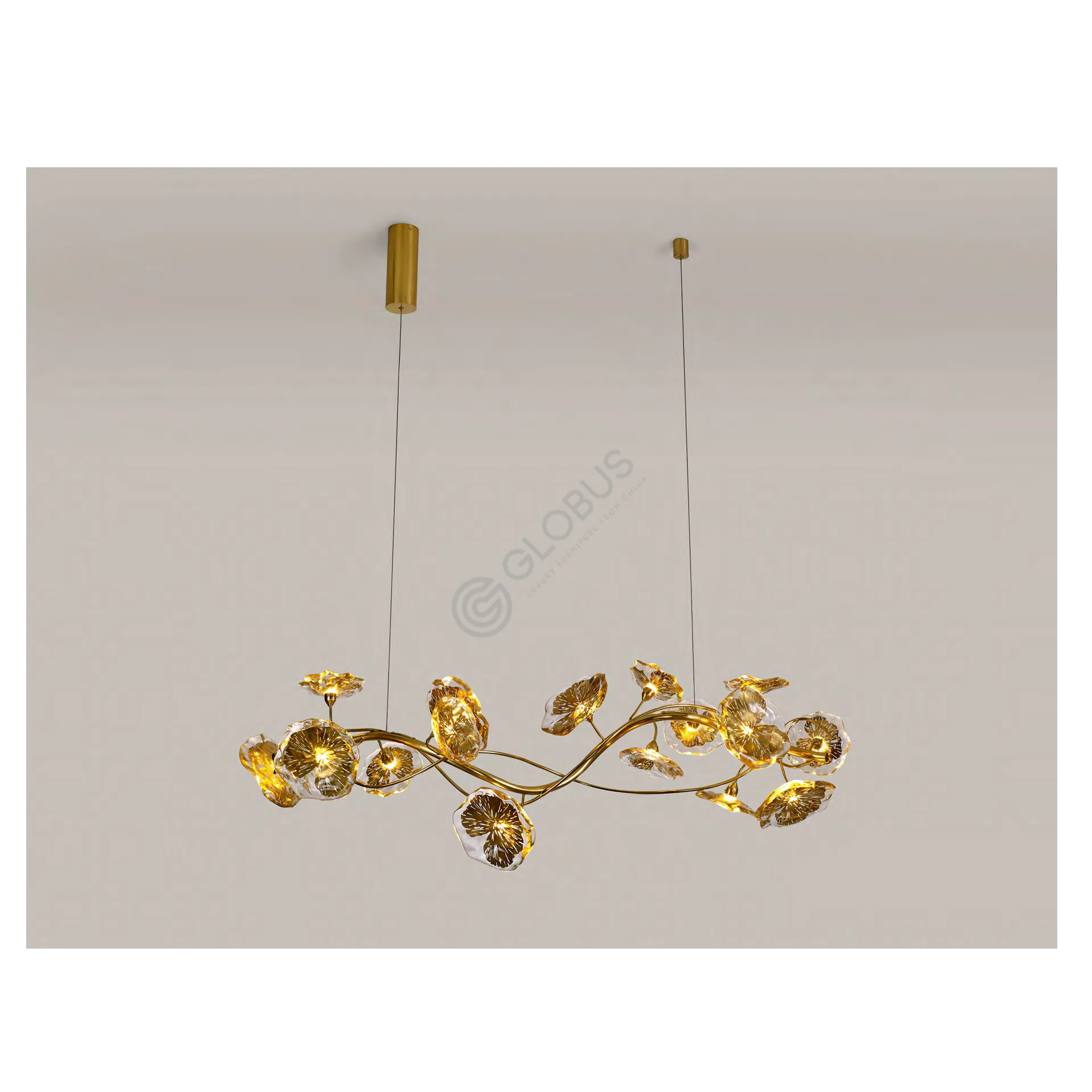 Эта изысканная люстра, выполненная из латуни и эпоксидной смолы, станет настоящим украшением вашего интерьера. Ее современный дизайн с элементами арт-деко идеально впишется в гостиную, спальню или столовую, добавляя нотку элегантности и утонченности. Тонкие линии и изящные формы создают гармоничное сочетание материалов, придавая помещению особую атмосферу. Люстра не только освещает пространство, но и служит стильным акцентом, подчеркивающим ваш безупречный вкус.