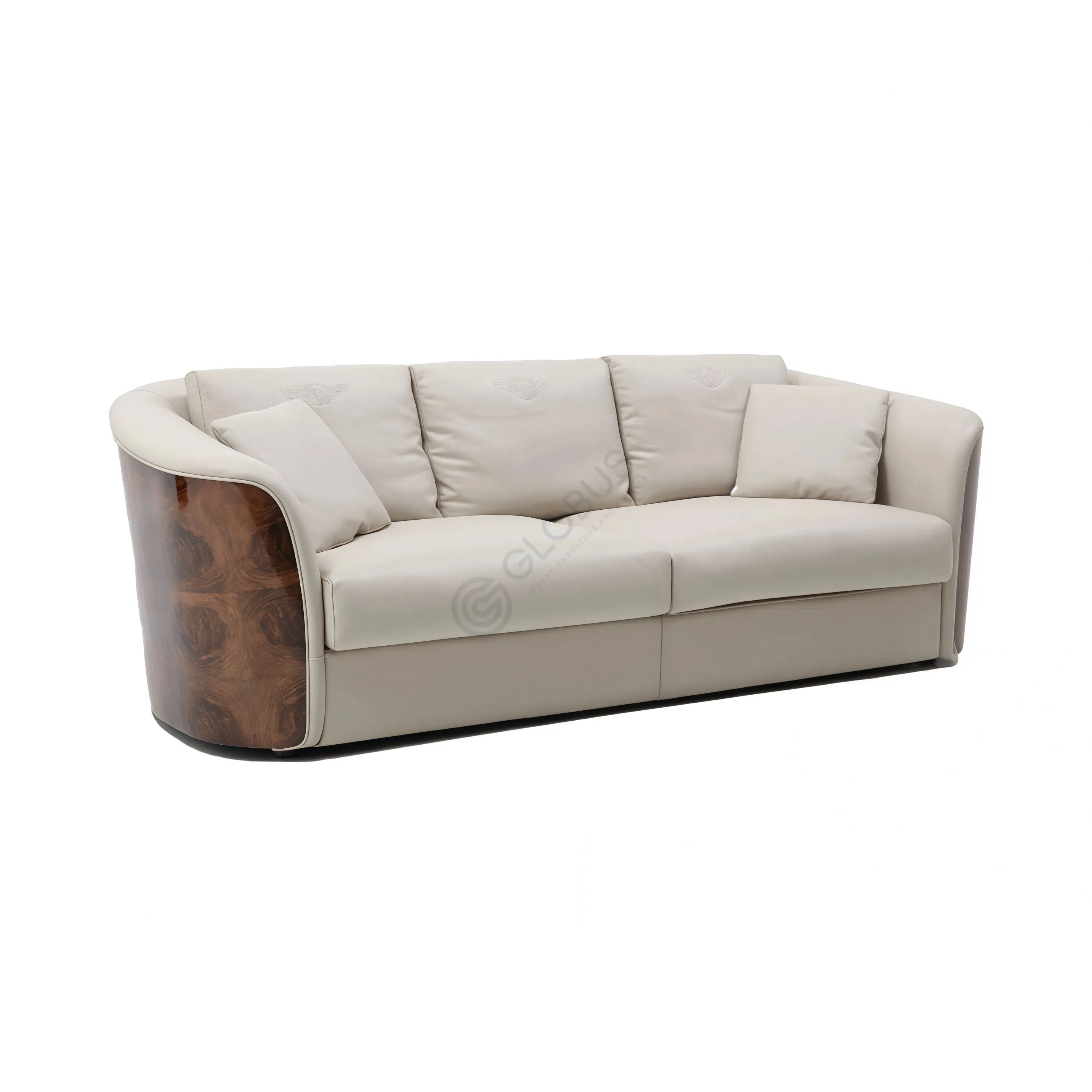 В основе этого сиденья лежит прочный каркас из натурального дерева и фанеры, обеспечивающий долговечность и стабильность. Внешняя часть корпуса отделана великолепным натуральным шпоном с выразительным рисунком, придающим изделию глубокий, роскошный вид. Внутренняя поверхность, обтянутая высококачественным текстилем нежного оттенка, дарит приятные тактильные ощущения, подчеркивая его премиальный характер.