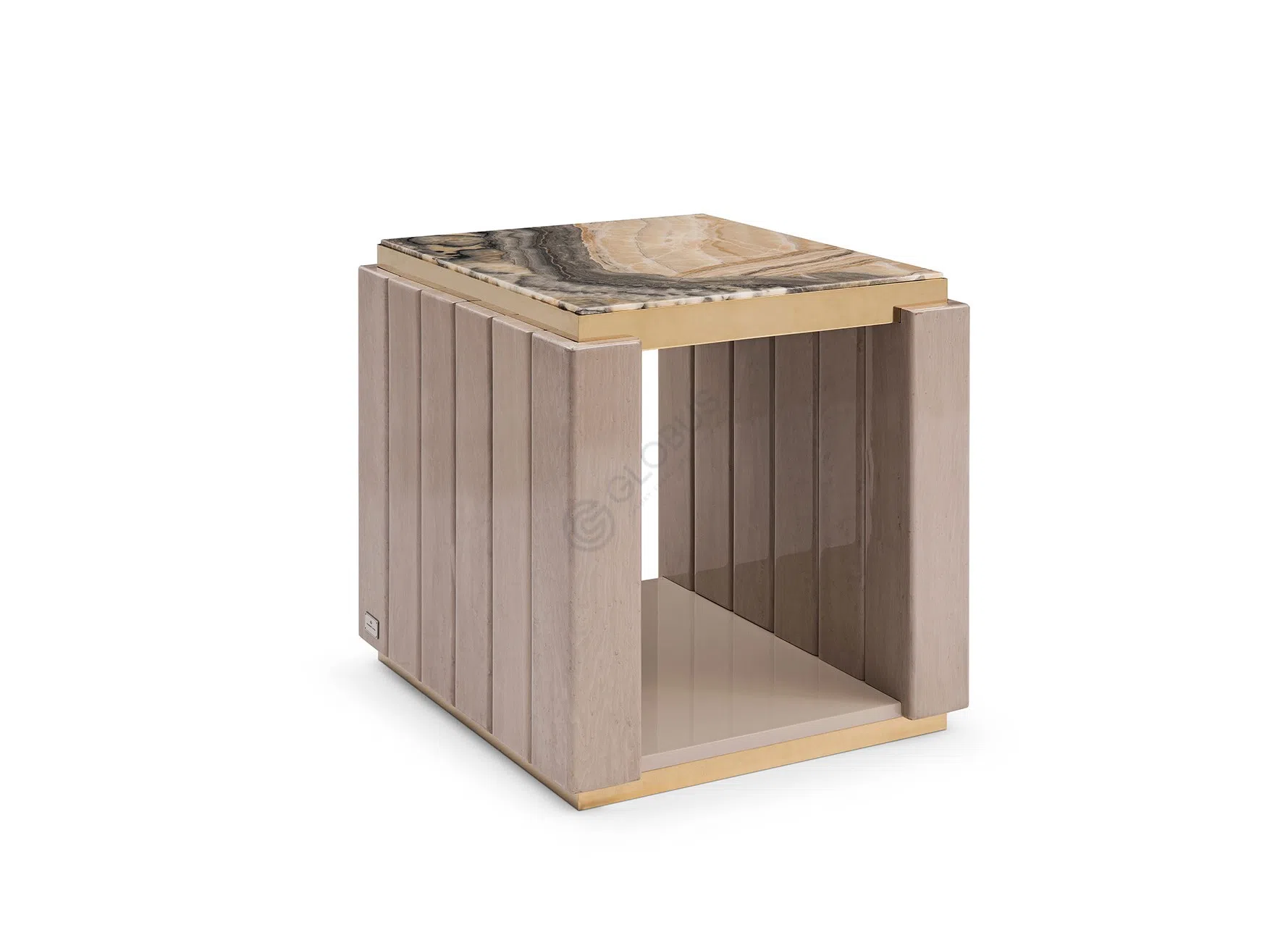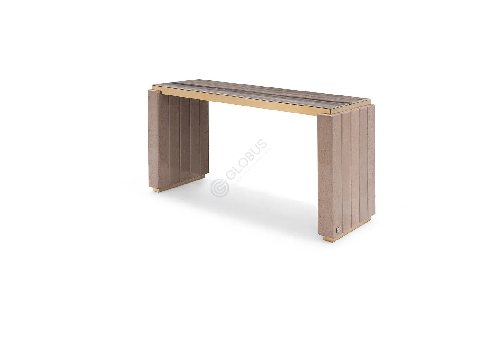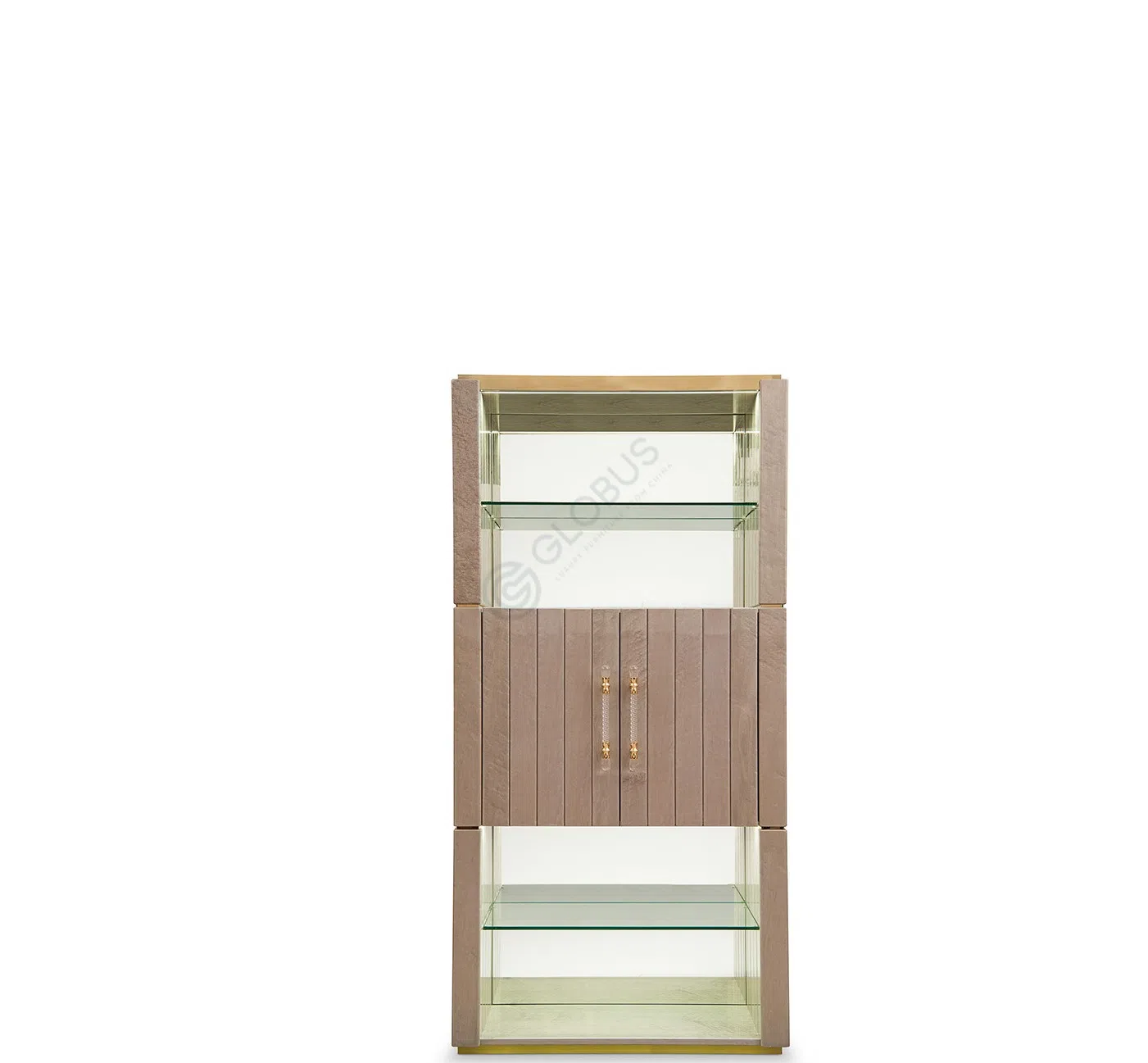 В ее создании использованы отборные природные материалы, каждый из которых привносит свою уникальную ценность. Поверхность венчает благородный натуральный мрамор с его неповторимым узором, придающий изделию ощущение роскоши и долговечности. Корпус выполнен из натурального дерева, чья теплая фактура создает уютную атмосферу. Элегантные металлические элементы добавляют современный блеск, а прозрачное стекло полок обеспечивает легкость конструкции и удобство размещения мультимедийных устройств или декора.