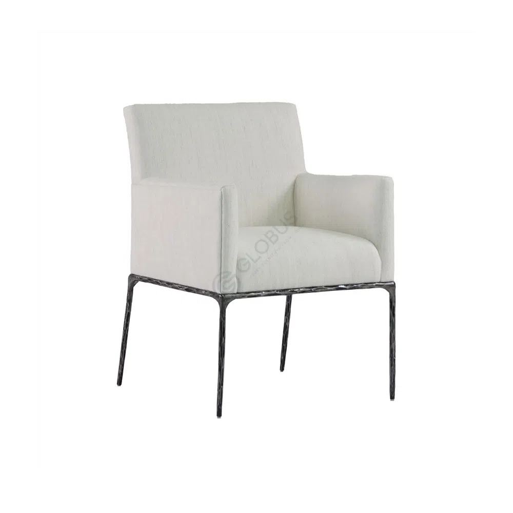 Особый шарм предмету мебели придает его каркас, выполненный из железа. Необычная, почти органическая фактура металла, будто кованая вручную, создает эффект живого, неповторимого узора. Этот рельефный элемент искусно контрастирует с гладкостью и мягкостью сиденья, придавая композиции динамизм. Серебристый оттенок металлического основания подчеркивает индивидуальность кресла, делая его истинным акцентом интерьера.