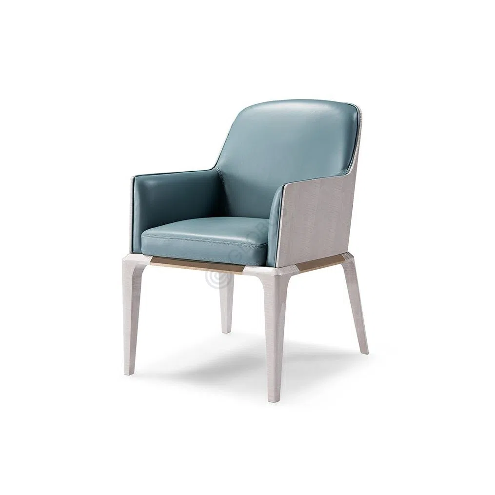 Элегантный обеденный стул сочетает в себе изысканность и комфорт. Каркас из натурального дерева обеспечивает прочность и долговечность, а обивка из кожи добавляет мягкость и стиль. Металлические элементы придают современный акцент, создавая гармоничный баланс между классикой и современностью. Этот стул станет идеальным дополнением к любому интерьеру, добавляя уют и утонченность в вашу столовую зону.