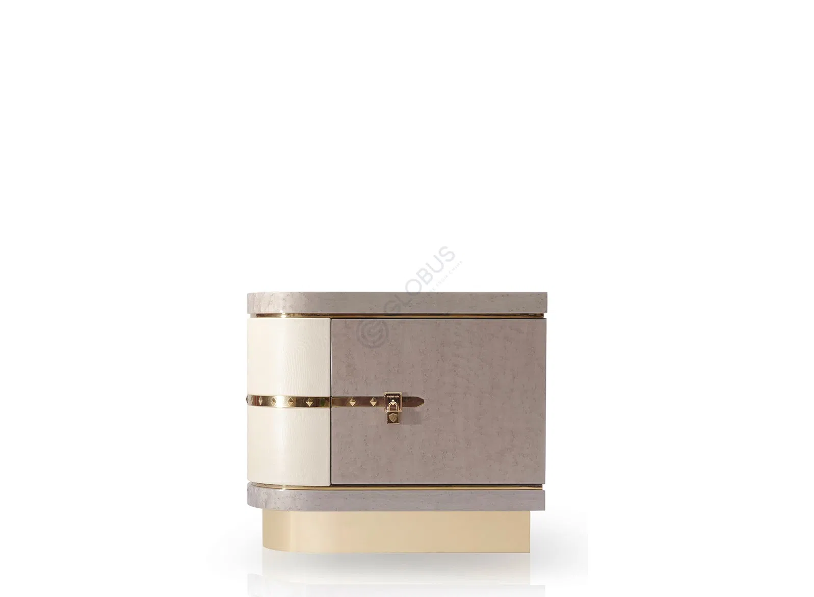 Основа мебели выполнена из массива натурального дерева и фанеры, покрытых шпоном, обеспечивая прочность и надежность конструкции. Поверхность обработана экокожей на микрофибре, добавляя нежность прикосновения и изысканность облику. Изящные металлические вставки цвета латуни служат утонченными акцентами, подчеркивая роскошный характер предмета.