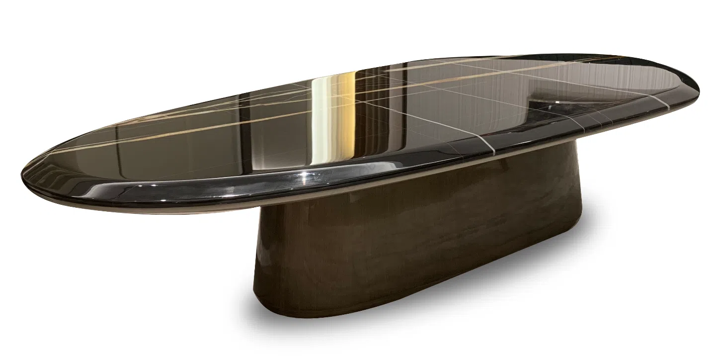 Представляем центральный элемент современного интерьера — журнальный столик, являющий собой образец изысканного дизайна. Его обтекаемая овальная столешница выполнена из роскошного натурального мрамора, который придает поверхности неповторимую глубину и благородный вид.