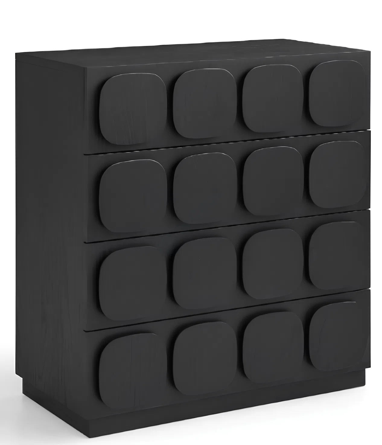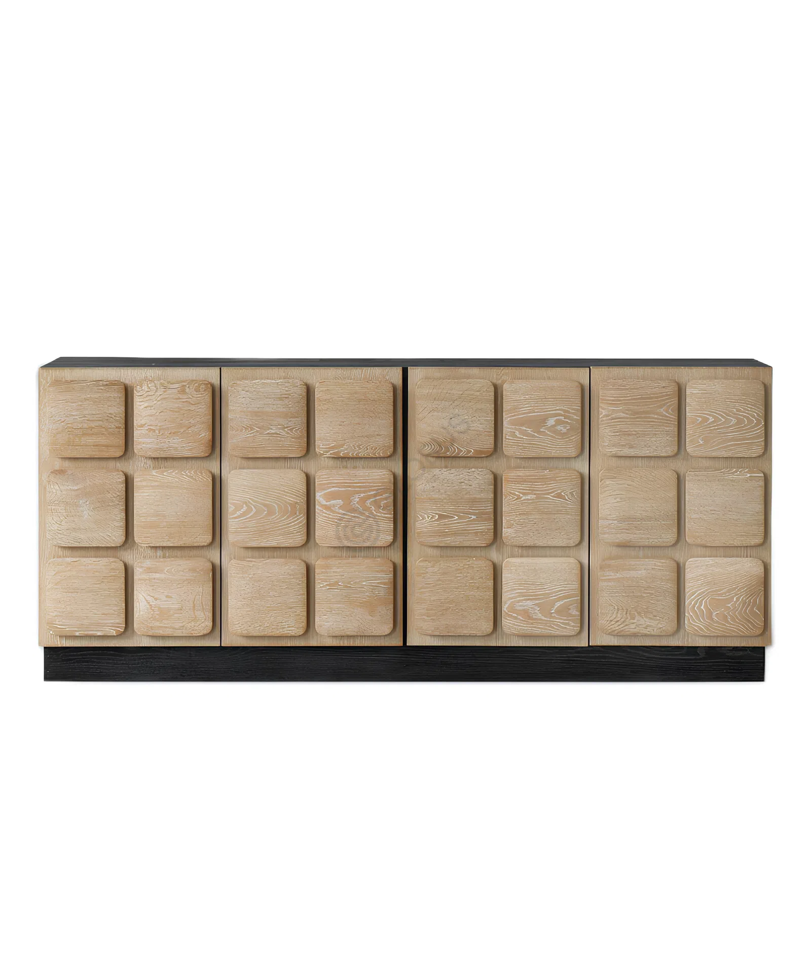Основу изделия составляет прочная фанера, покрытая изысканным натуральным шпоном. Фасад тумбы притягивает взгляд оригинальной комбинацией светлых древесных панелей с ярко выраженной фактурой. Эти декоративные элементы, выполненные в виде объемных квадратов, создают уникальный рельеф и придают поверхности особый шарм, подчеркивая естественную красоту дерева.
