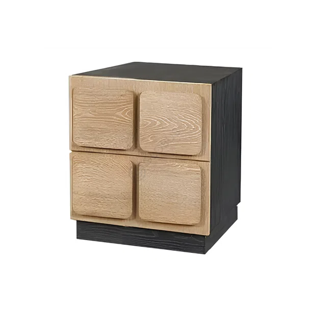 Фасады ящиков выполнены с объемными квадратными элементами, которые добавляют изделию акцентную фактуру. Мягкие линии и плавные переходы в геометрии фасадов подчеркивают эстетику минимализма, одновременно создавая уютную атмосферу.