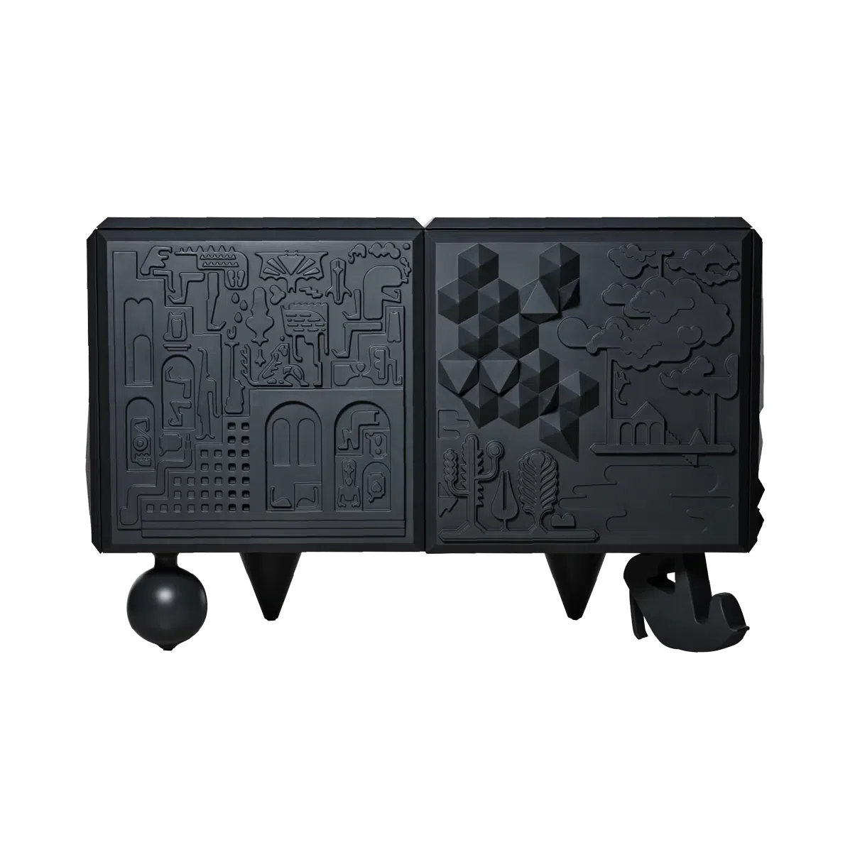Комод в современном стиле удивляет необычным дизайнерским решением: его фасады украшены сложными рельефами и геометрическими узорами, вдохновленными архитектурой города и природными мотивами. Каждый элемент создаёт собственную визуальную историю, превращая мебель в выразительный акцент интерьера.