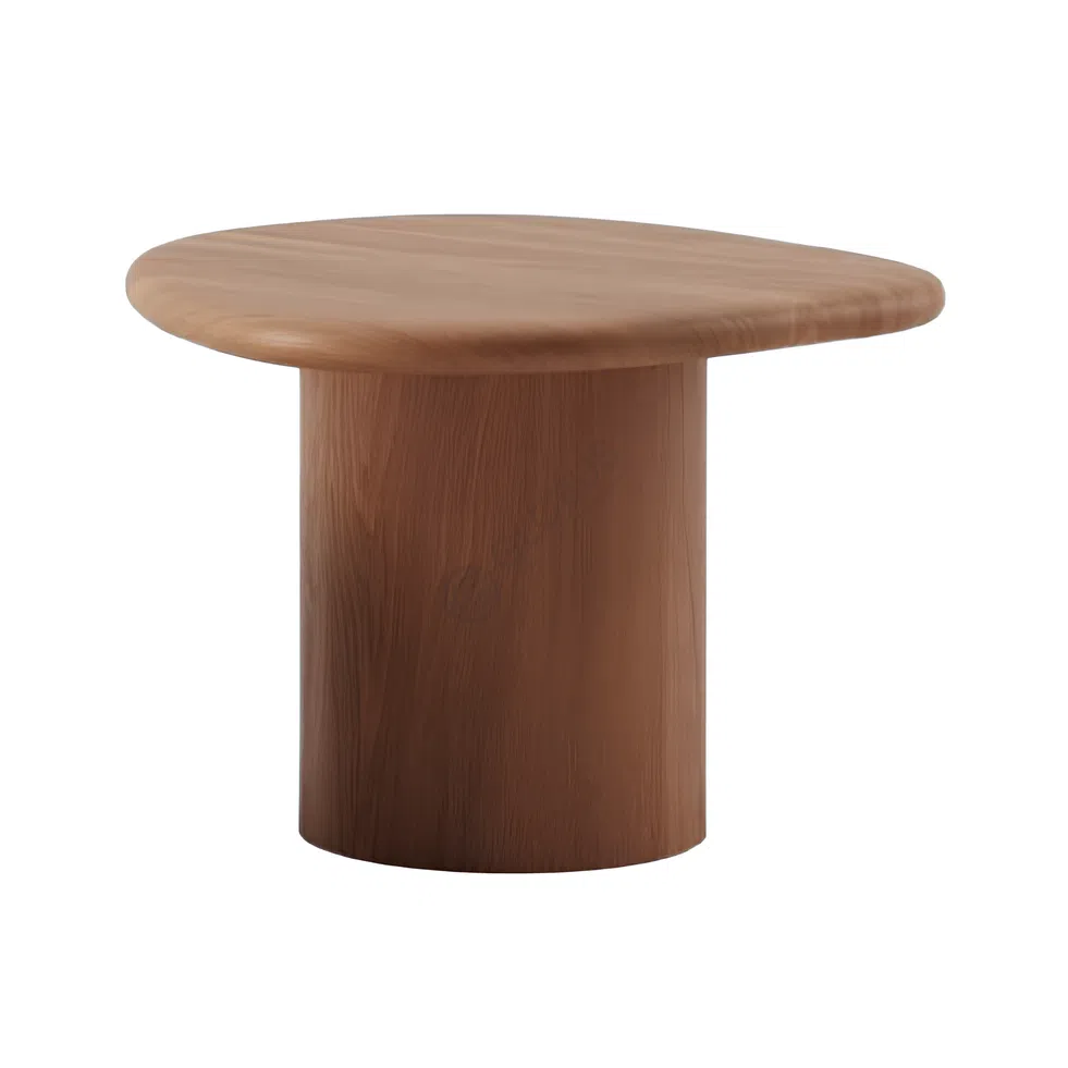 Скульптурные опоры из натурального дерева с волнообразным профилем придают образу устойчивость и теплоту. Контраст фактур создает современную, экологичную эстетику, которая органично выглядит в гостиной и легко сочетается с нейтральной палитрой.