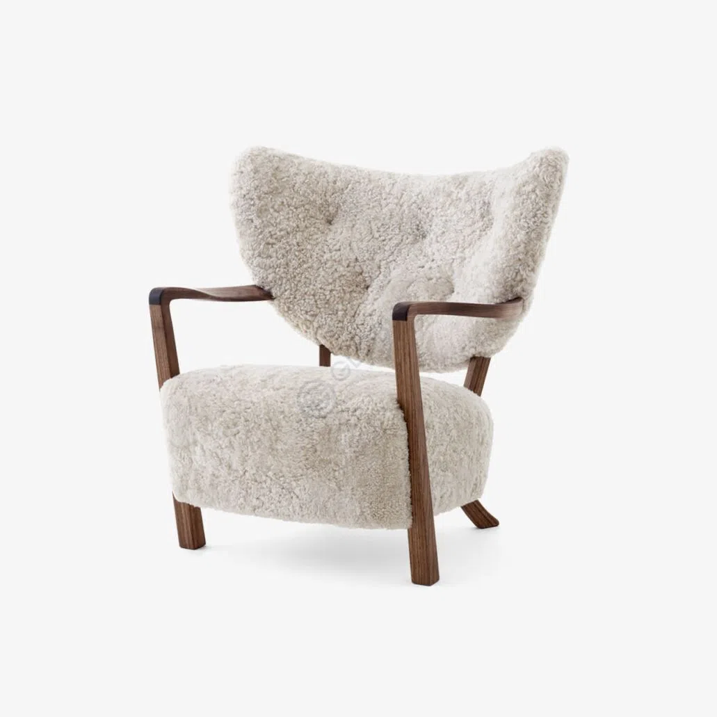 Основа его конструкции представлена прочным каркасом из натурального дерева и фанеры, обеспечивающим надёжность и устойчивость. Поверхность обтянута роскошной овечьей шерстью, которая дарит исключительно приятные тактильные ощущения и подчёркивает особенность изделия. Каждая деталь здесь продумана до мелочей и воплощена с высоким мастерством.