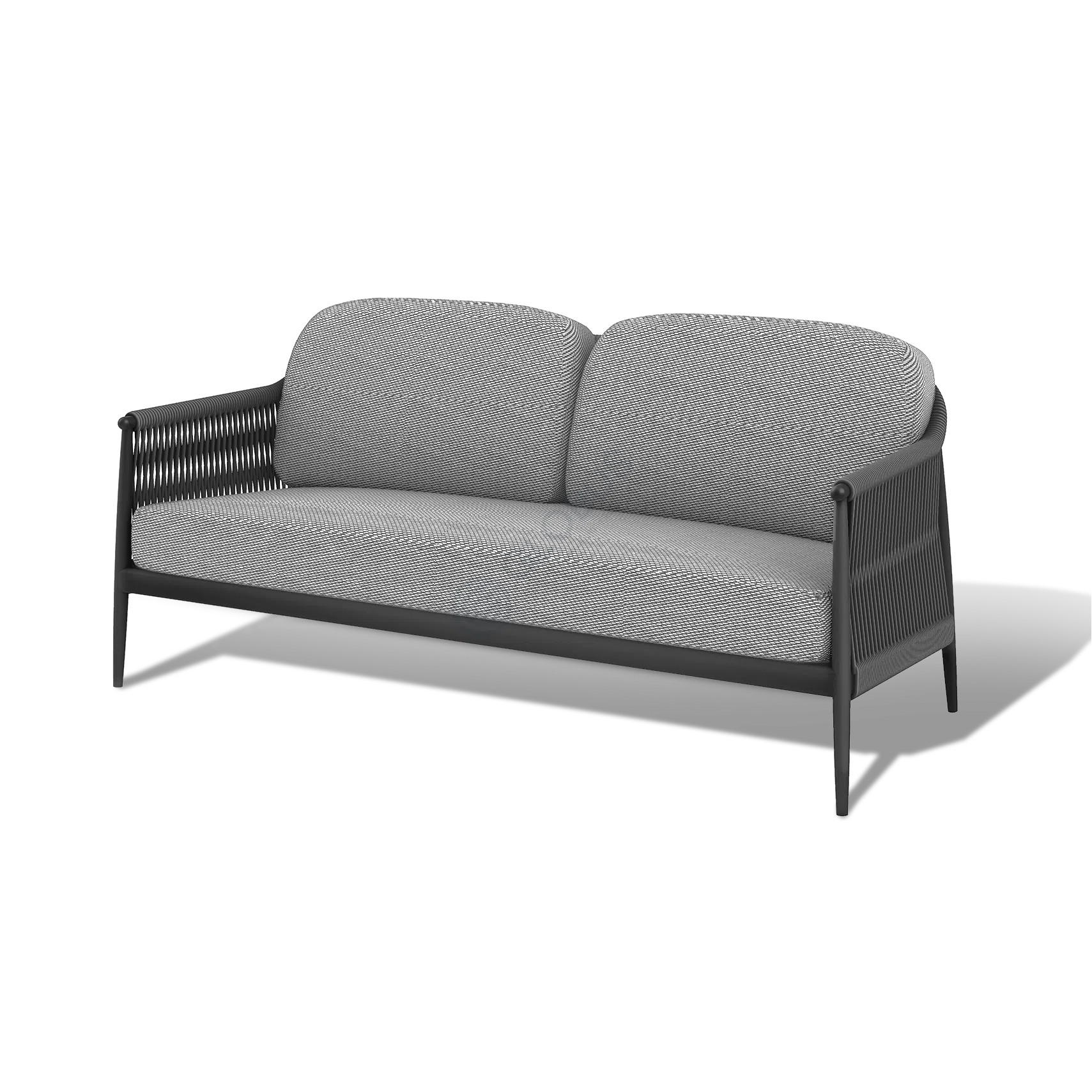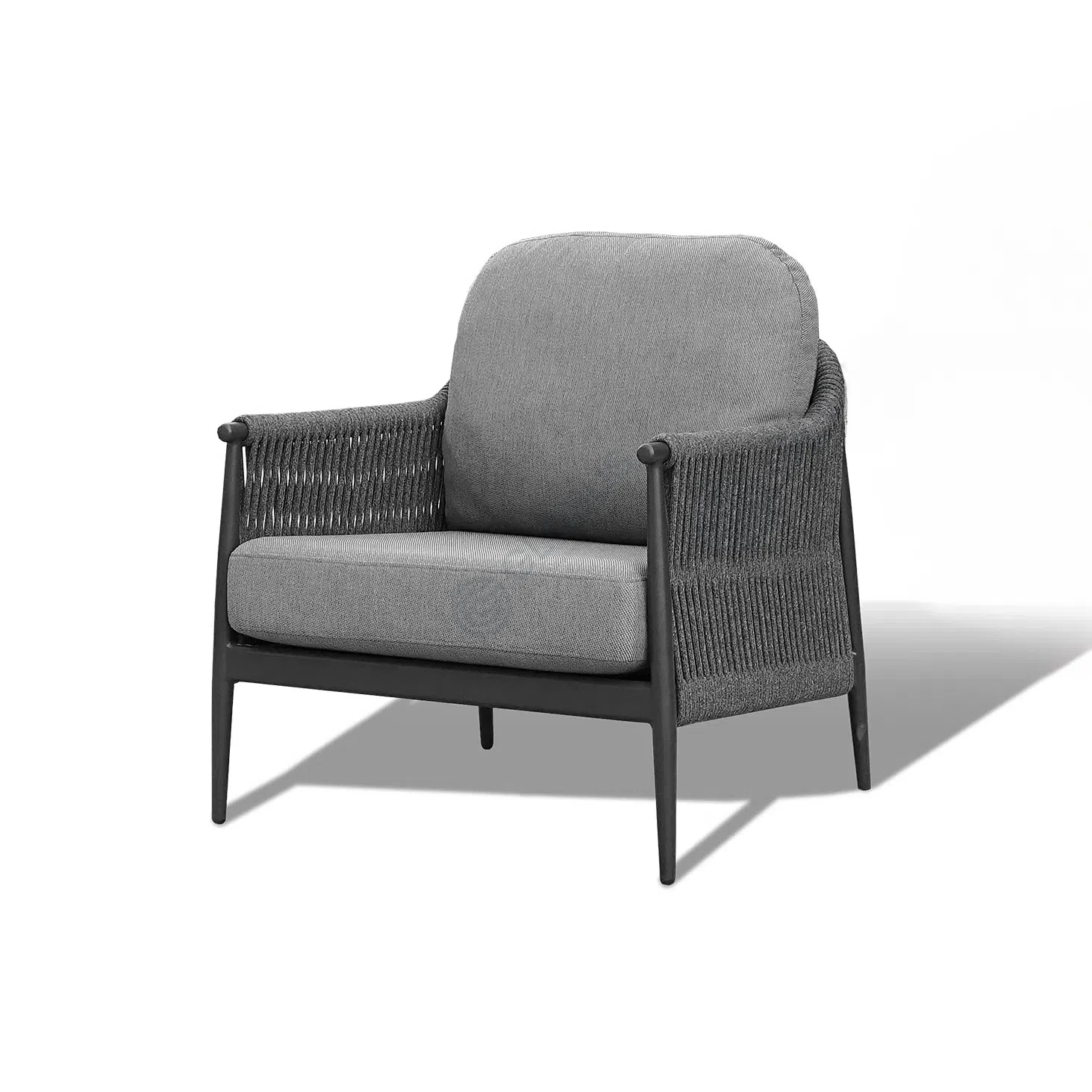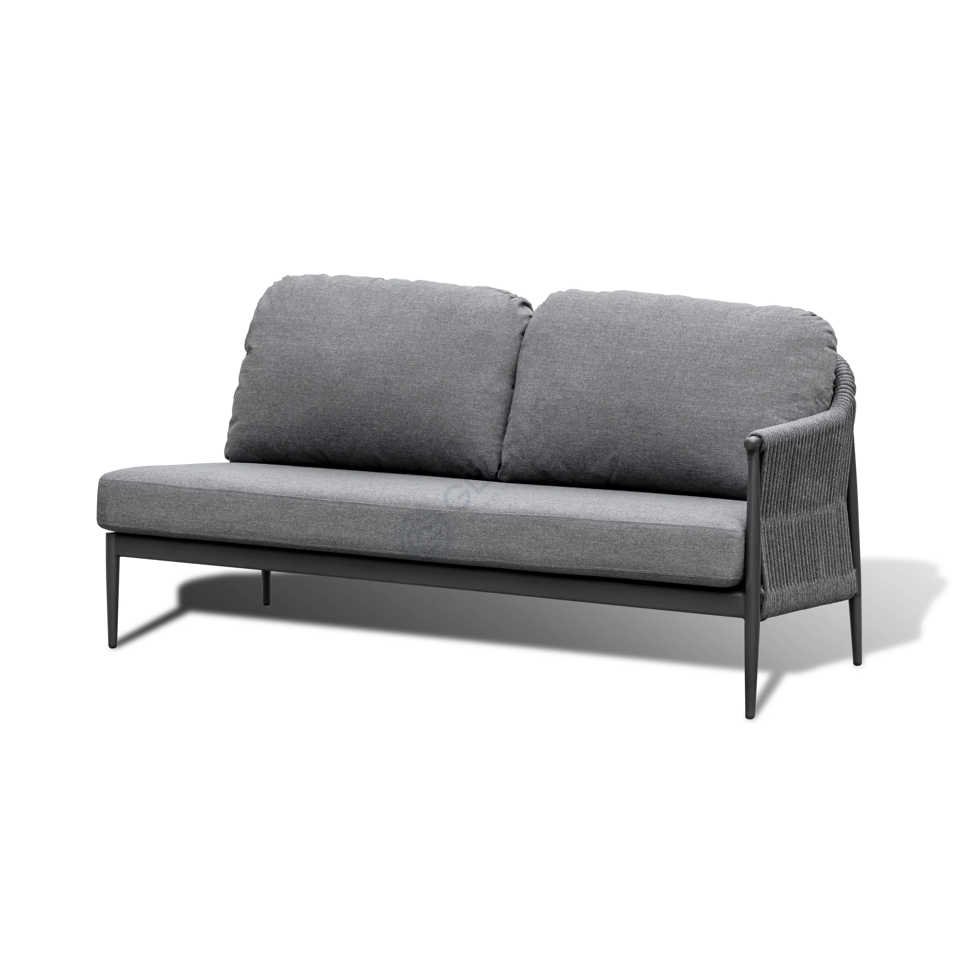 Основой конструкции служит прочный алюминиевый каркас, обеспечивающий долговечность и устойчивость в любых погодных условиях. Элегантные боковые панели искусно выполнены из искусственного ротанга, добавляя текстурный интерес и визуальную теплоту. Дополняют образ объемные мягкие подушки, обтянутые качественным текстилем, приглашающие расположиться с максимальным удобством.