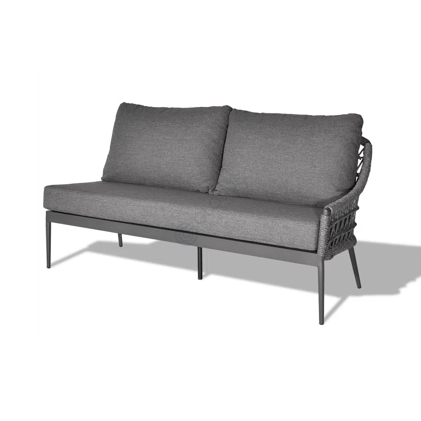 Конструкция изделия выполнена из прочного алюминия, обеспечивающего надежность и долговечность. Боковины и спинка дивана деликатно оформлены плетением из искусственного ротанга, добавляя текстурный интерес и визуальную легкость. Этот материал прекрасно переносит воздействие окружающей среды, сохраняя свой первоначальный вид.
