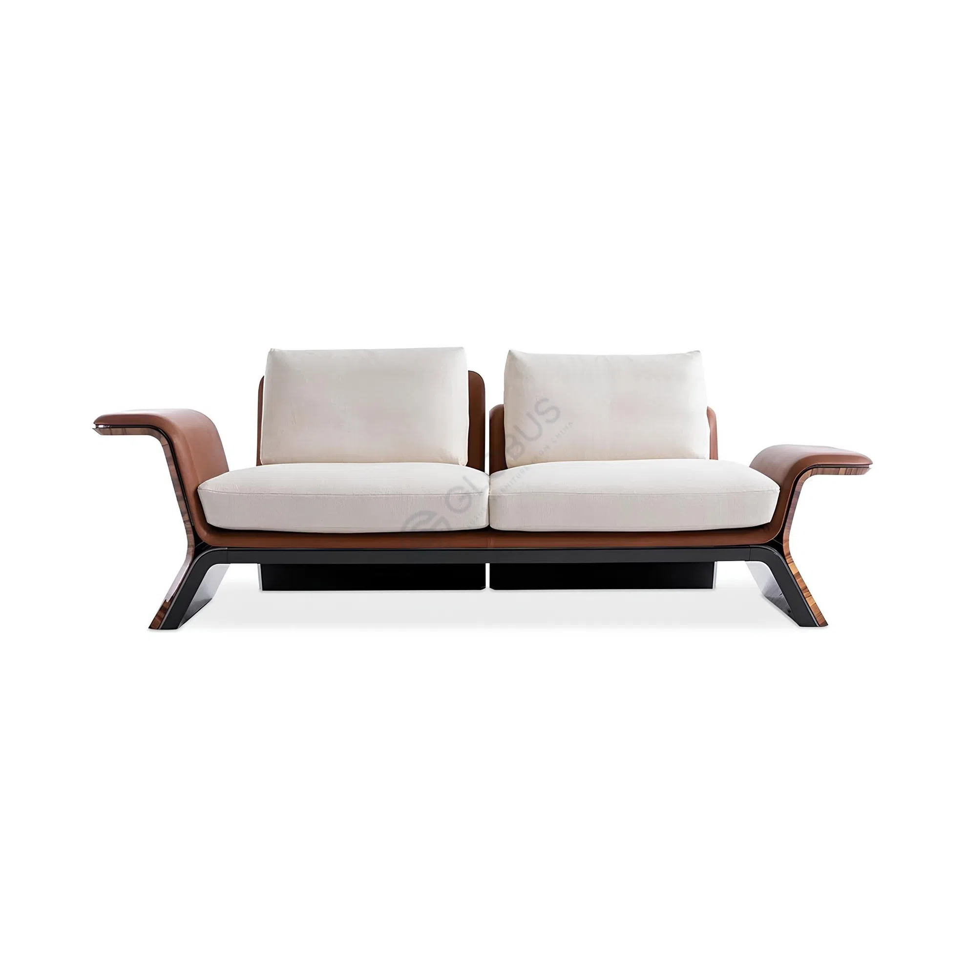 Плавные, скульптурные линии каркаса создают ощущение движения и переходят в уникальные боковые поддержки, обтянутые тактильно приятным премиальным материалом. Эта деталь придает изделию особый характер и узнаваемость.