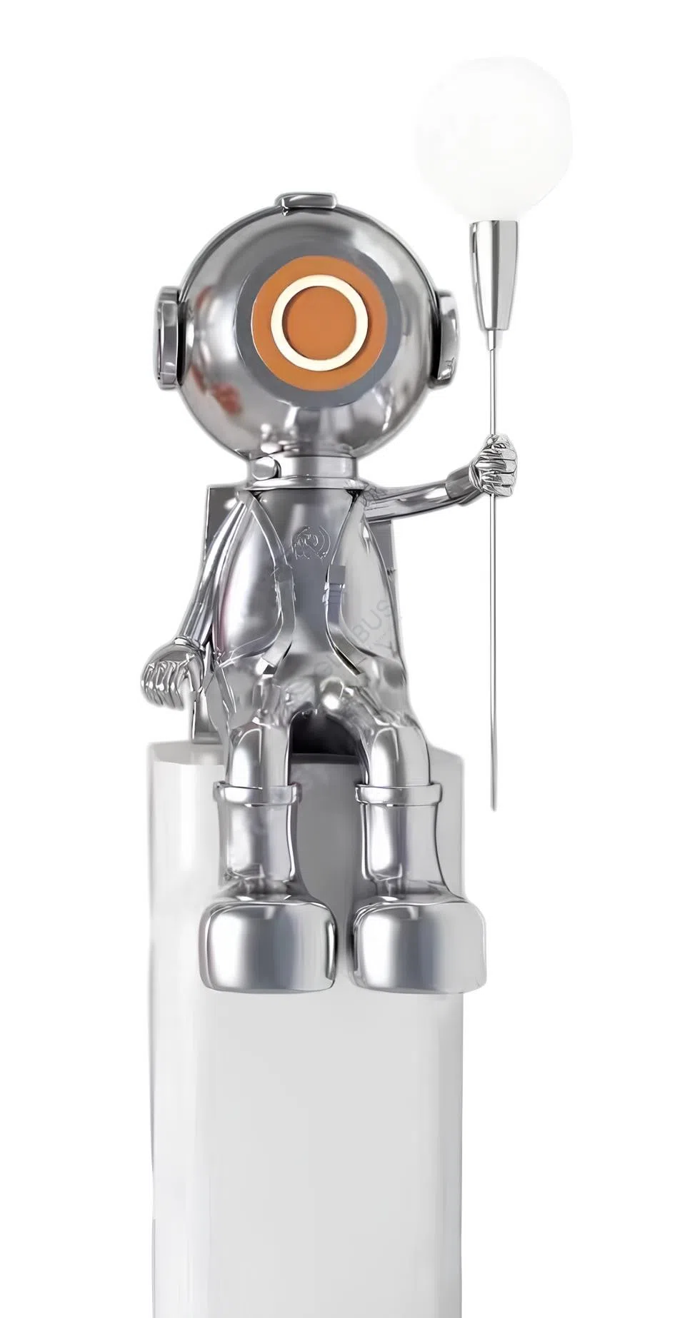 Торшер выполнен в оригинальной форме, которая привлекает внимание своей необычностью. Корпус из стеклопластика покрыт гальваническим слоем, создающим зеркальный эффект и придающим изделию современный и изысканный вид. Детали оформлены с использованием элементов в теплых металлических тонах, что гармонично дополняет общий дизайн. Эта модель станет ярким акцентом в интерьере, сочетая функциональность и декоративность.