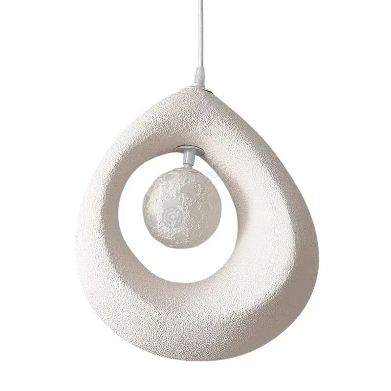 Подвесной светильник привлекает внимание своим оригинальным дизайном, в котором органичные формы сочетаются с текстурированным материалом. Мягкий свет, проходящий через изящный абажур, создаёт уютную атмосферу. Благодаря использованию пластика изделие отличается лёгкостью и долговечностью, что делает его практичным выбором для современного интерьера.