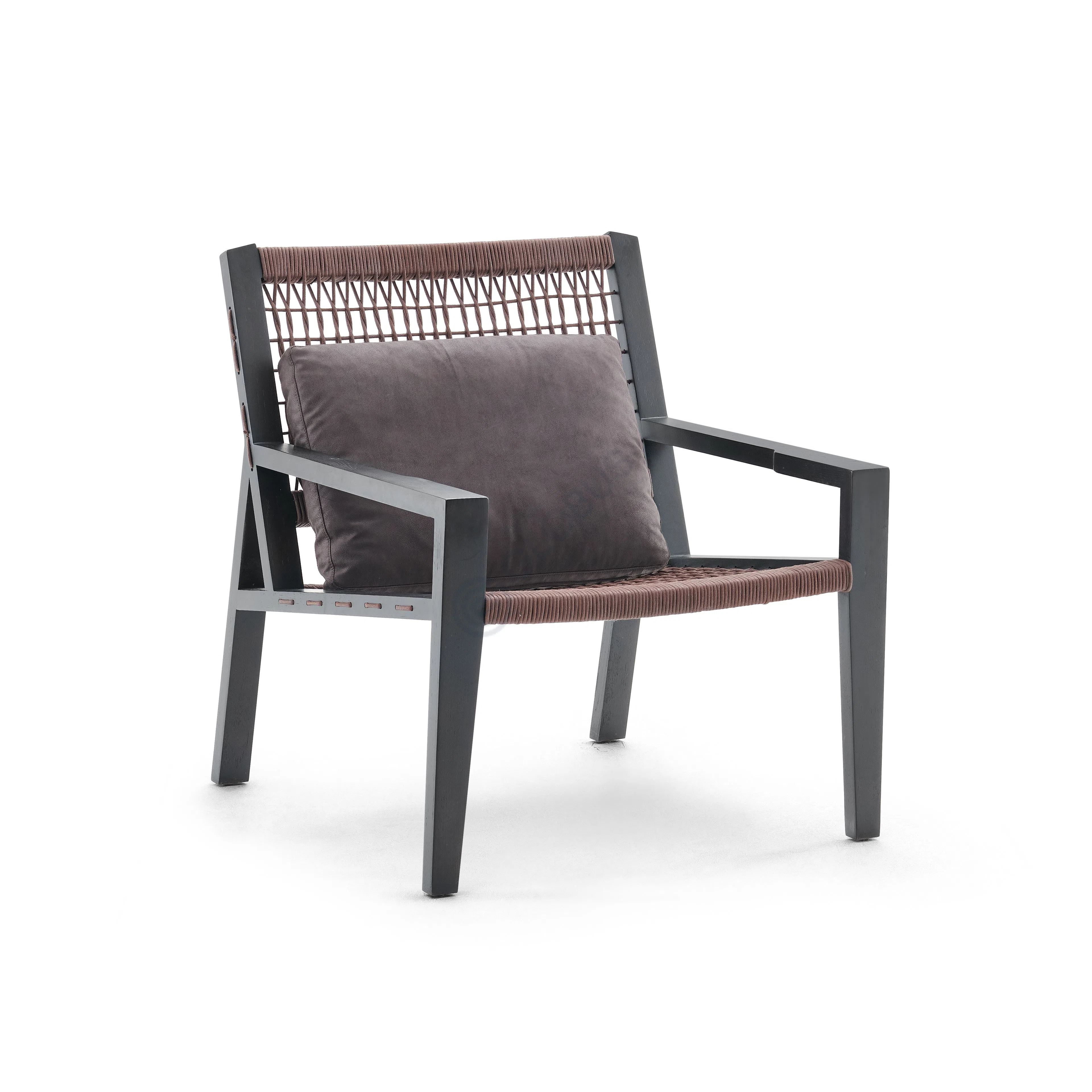 Основание изделия выполнено из прочного натурального дерева, формируя устойчивый и утонченный каркас. Сиденье, сплетенное вручную из долговечной веревки, добавляет уникальный тактильный и визуальный элемент, подчеркивая мастерство исполнения.