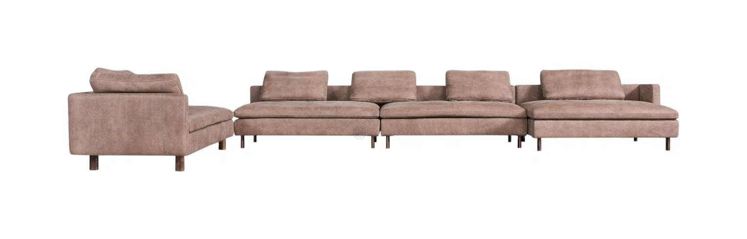 Этот диван становится центральным элементом гостиной, предлагая утонченную основу для отдыха и общения. Его облик гармонично сочетает современные линии и безмятежный комфорт.