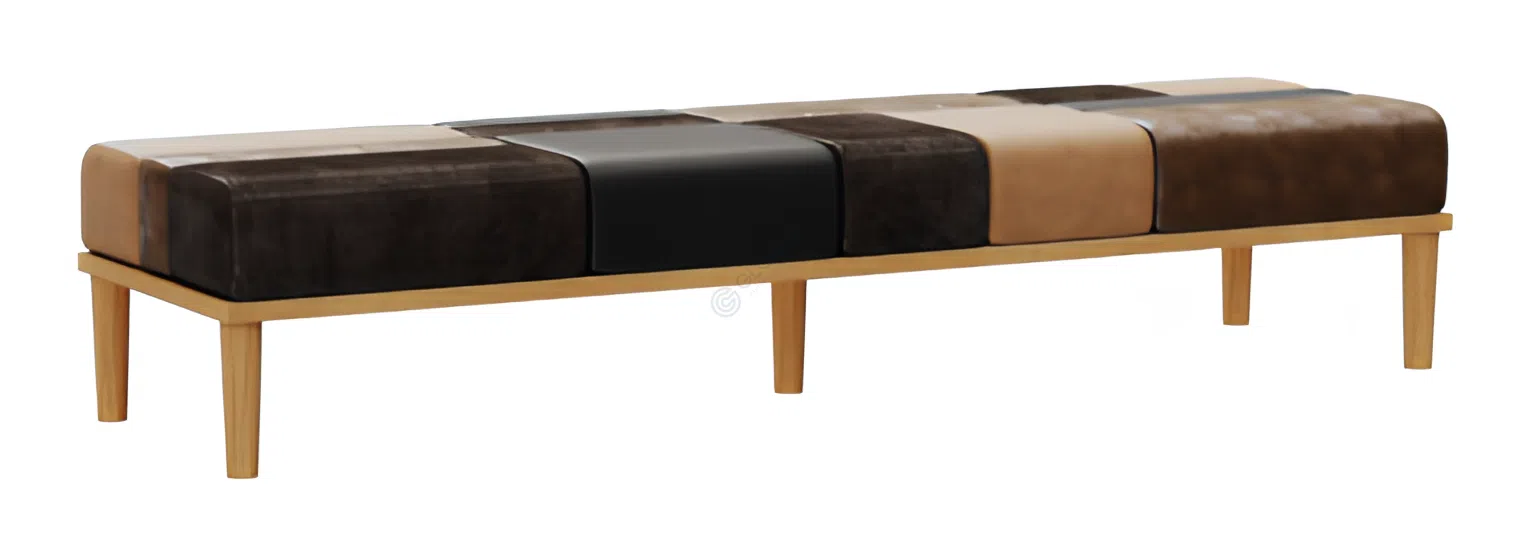 Особое внимание привлекает изголовье, выполненное в оригинальной технике пэчворк. Разнообразие фактур и оттенков натуральной и искусственной кожи, объединенных в гармоничную композицию, придает этой детали уникальный характер. Каждый элемент изголовья carefully подобран, создавая визуальный акцент.