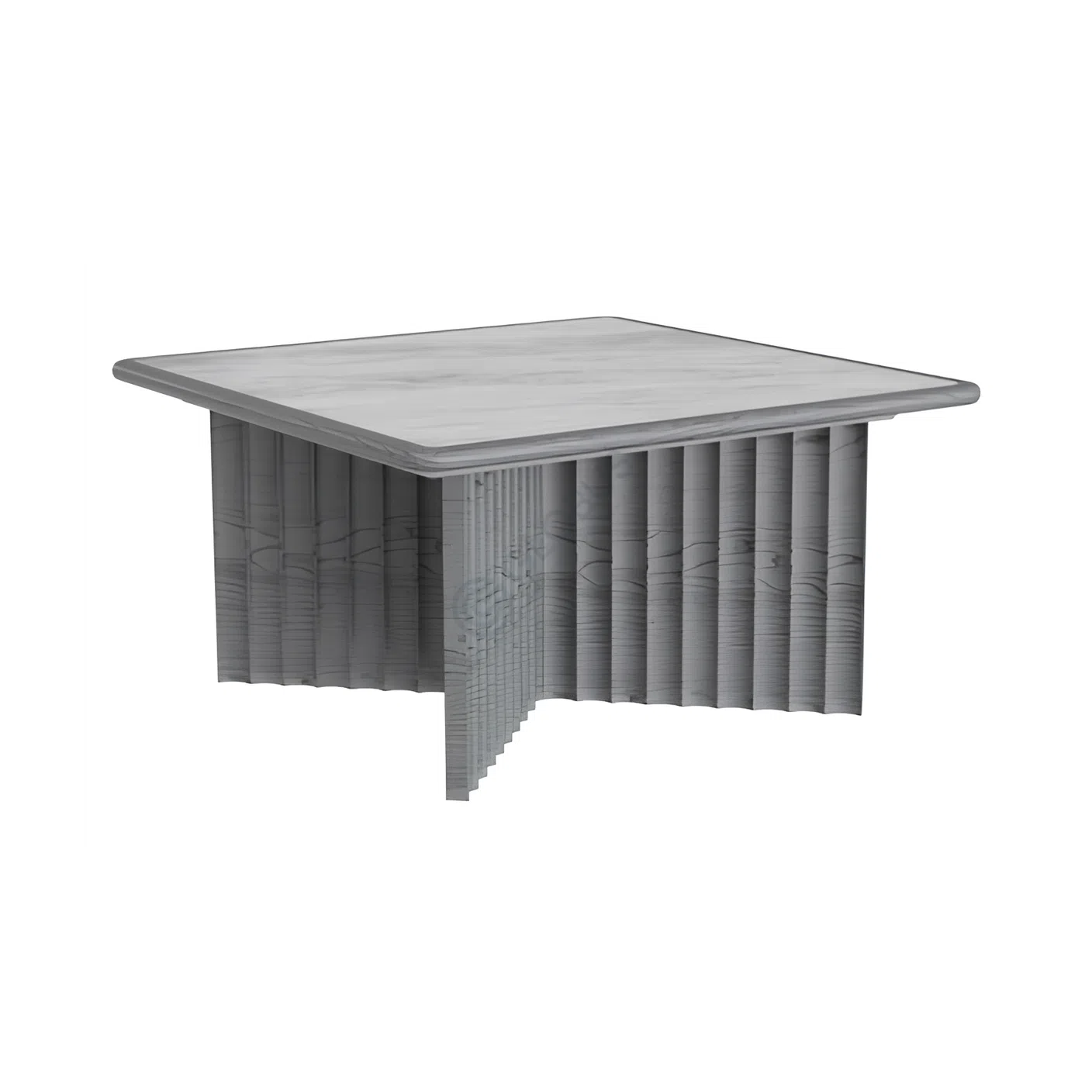 Визуальной доминантой является основание столика, выполненное в оригинальной складчатой форме. Этот рельефный узор придает объекту динамичность и глубину, превращая его из простого предмета мебели в настоящее произведение искусства. Каждая линия и изгиб тщательно проработаны, подчеркивая современную эстетику.