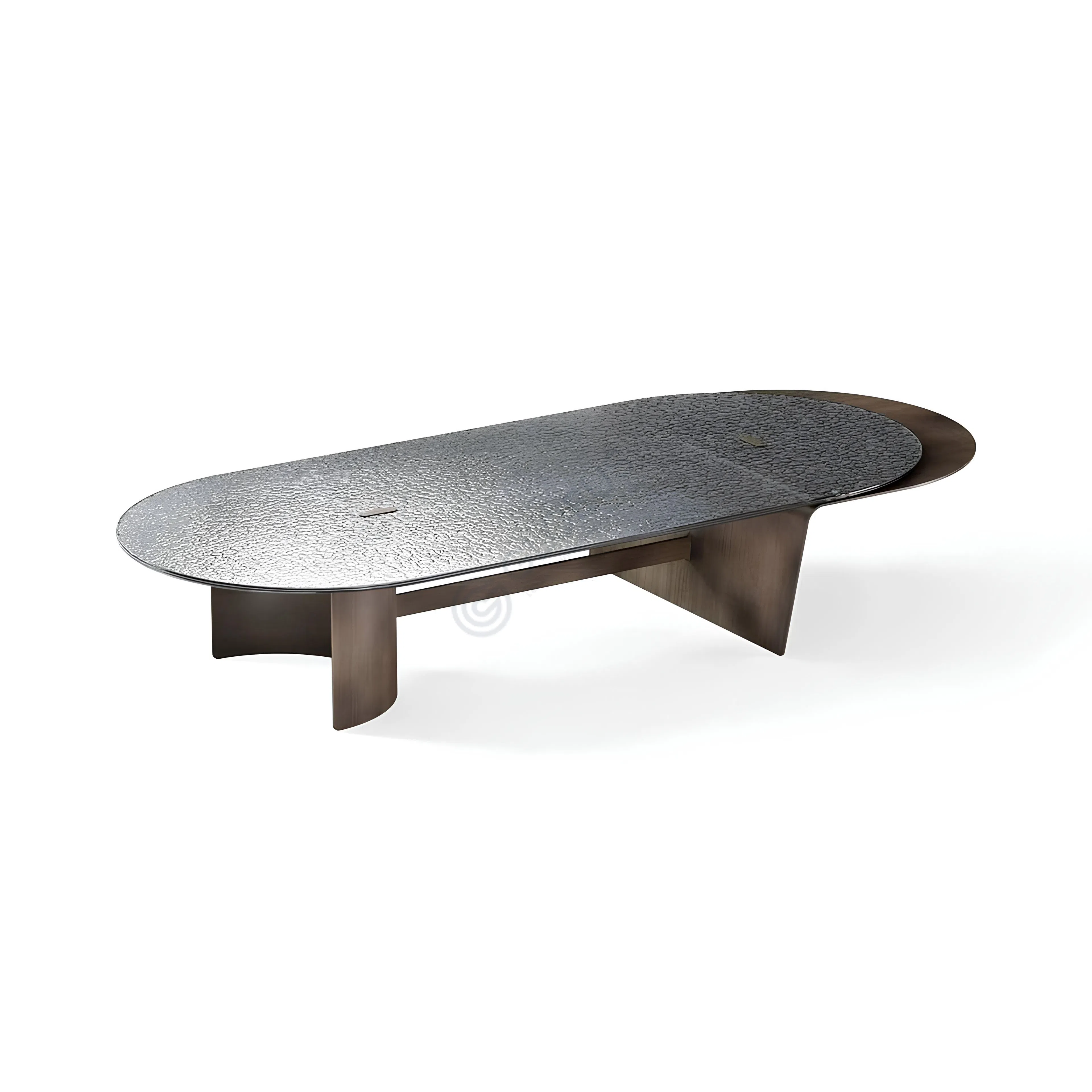 Элегантное сочетание материалов придает изделию особый шарм. Верхняя поверхность выполнена из текстурированного стекла, добавляющего утонченности, в то время как металлическое основание из нержавеющей стали обеспечивает прочность и создает гладкий, рефлексивный контур.