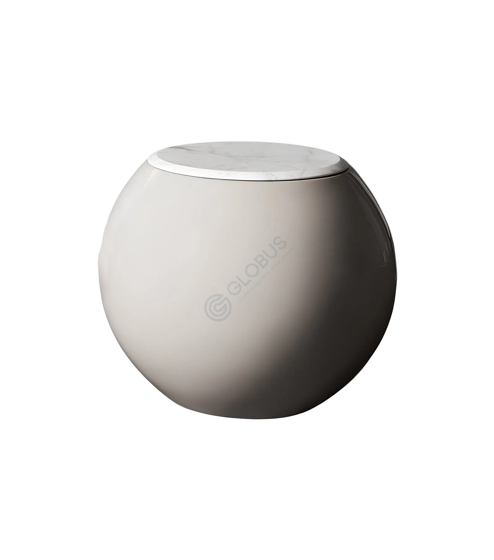 Основание предмета мебели имеет плавную, чашеобразную форму. Оно выполнено из фанеры, что позволило достичь идеальной гладкости и целостности контура. Контраст между богатой фактурой камня и монолитной поверхностью основания подчеркивает продуманность эстетики.