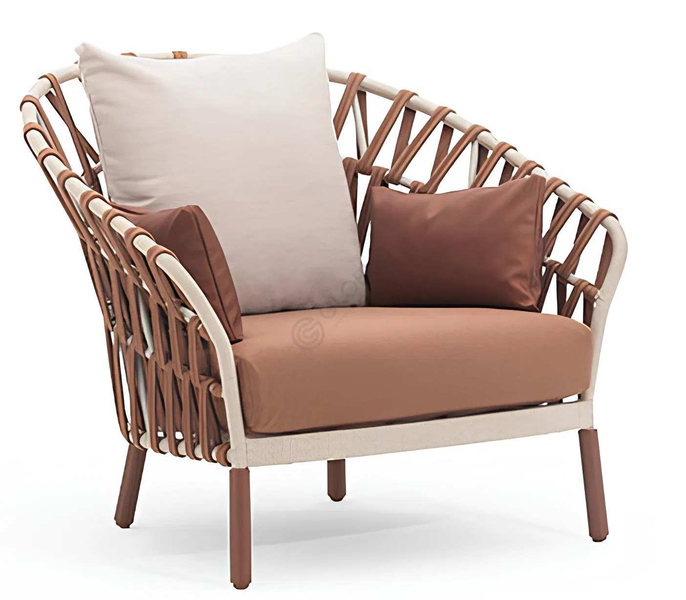 Сочетание тщательно подобранных материалов обеспечивает устойчивость к внешним условиям и долговечность. Оригинальная оплетка не только играет функциональную роль, но и придаёт модели выразительность. Такой дизайн создаёт атмосферу уюта и расслабленности на открытом воздухе.