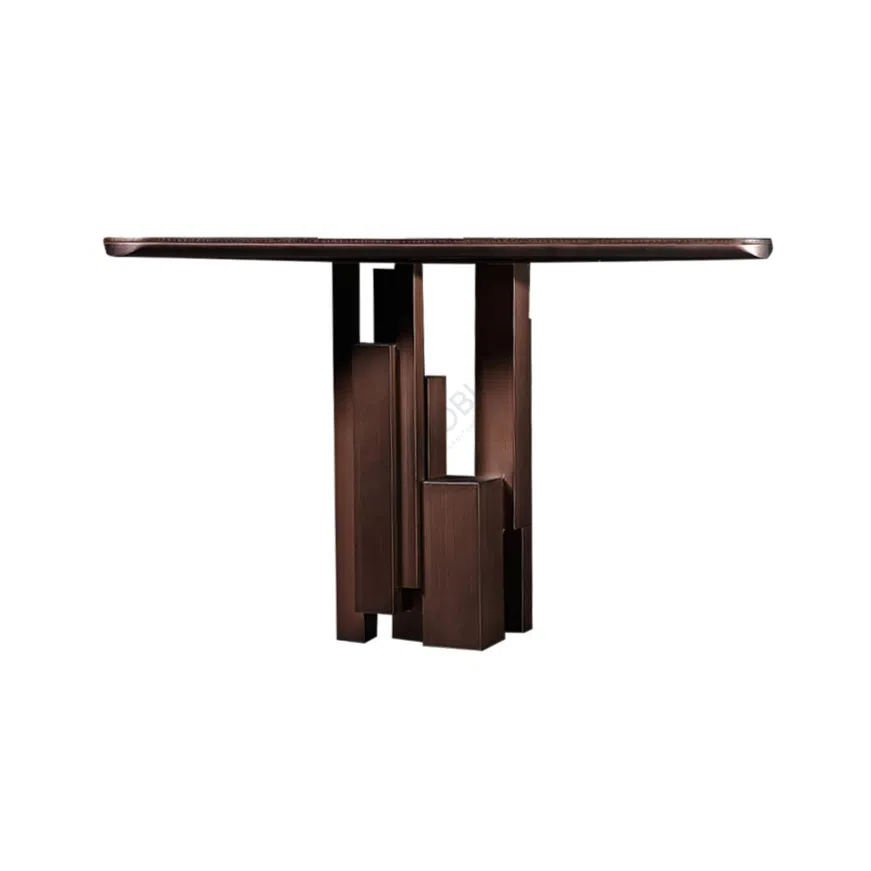 Основание выполнено из нержавеющей стали, что придает изделию необходимую устойчивость и прочность. Холодный блеск металла создает гармоничный контраст с натуральными поверхностями, усиливая эффект визуального притяжения.