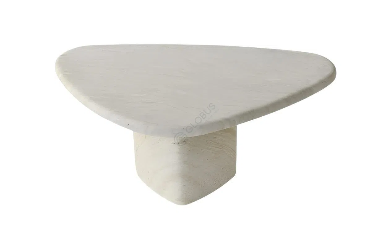 Журнальный столик из травертина сочетает в себе природную эстетику и актуальный современный дизайн. Лаконичная асимметричная столешница привлекает внимание мягкими линиями, а три массивные цилиндрические опоры придают конструкции уверенную устойчивость.