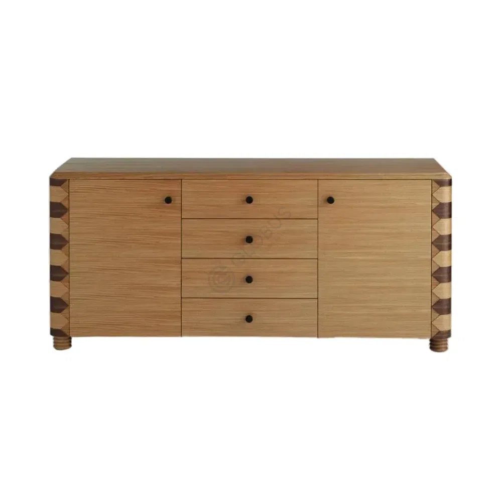 Прикроватная тумба сочетает в себе лаконичность современного дизайна и природное тепло экостиля. В её основе использовано натуральное дерево, дополненное вставками из фанеры, что подчеркивает естественную текстуру и природную эстетику изделия.