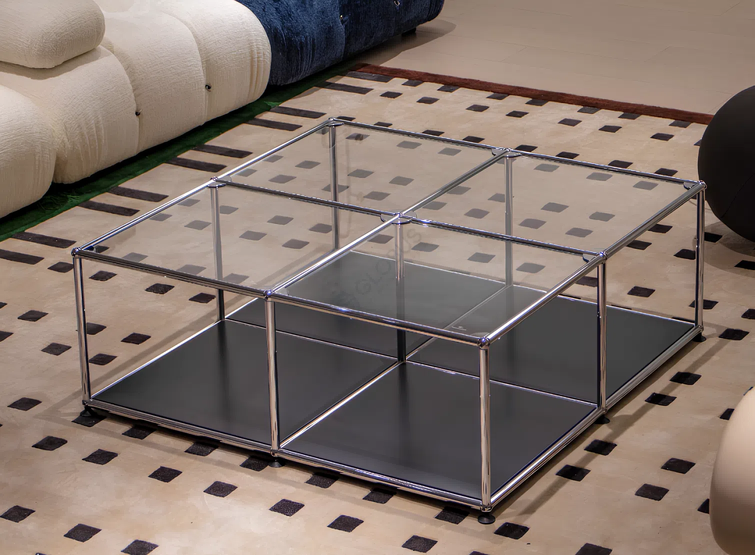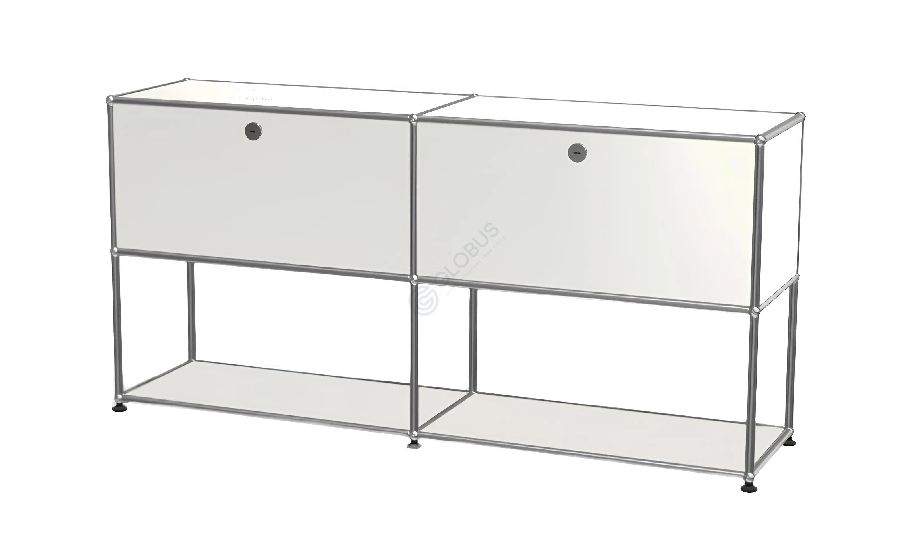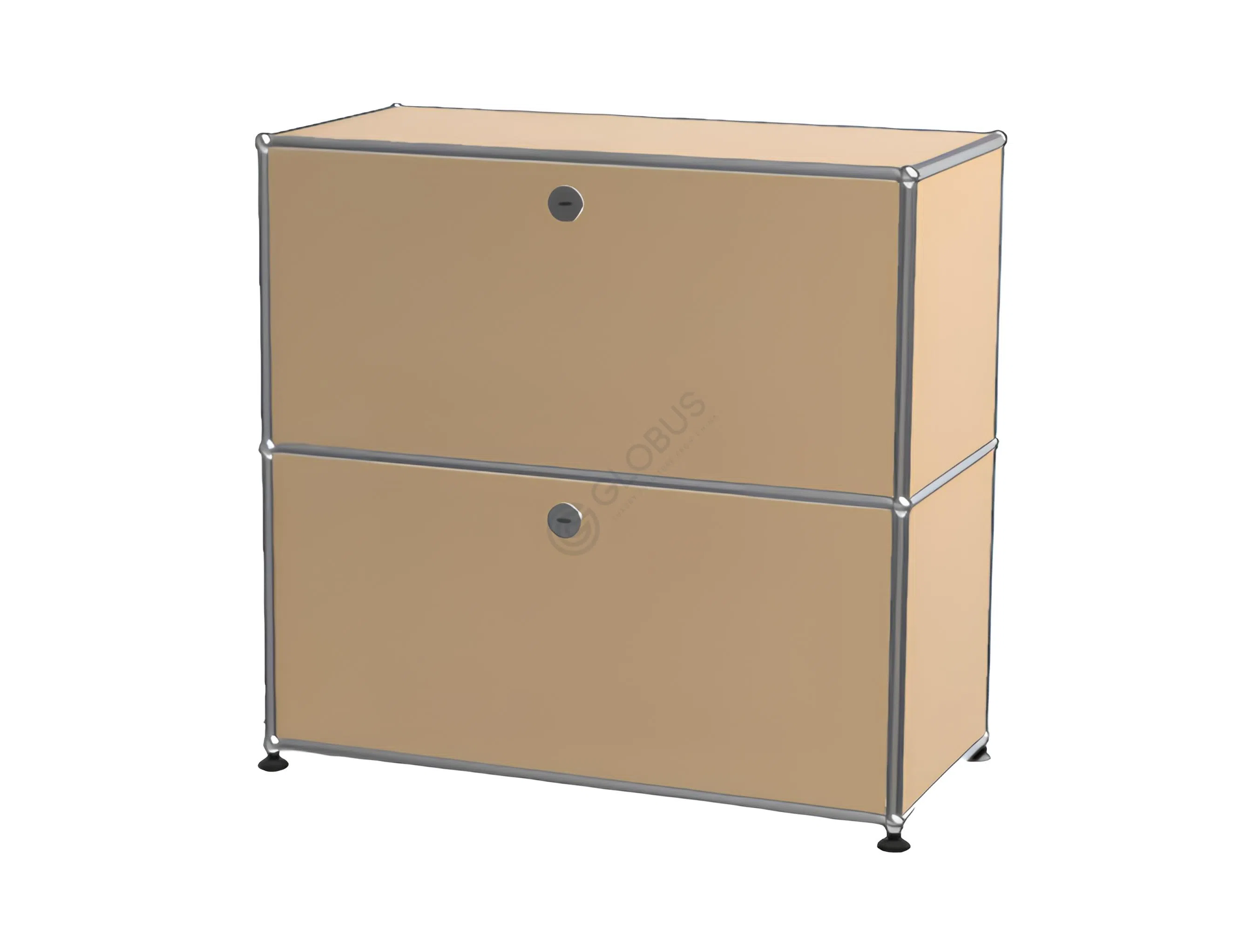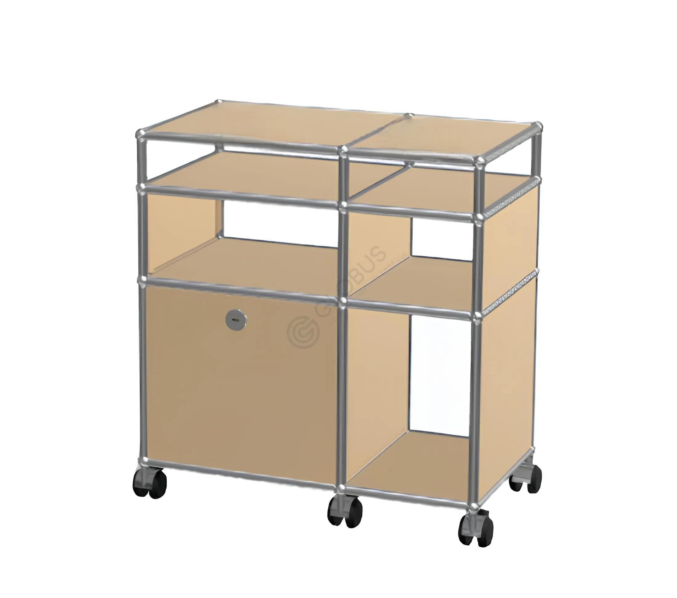 Просторная открытая ниша предоставляет место для хранения книг, гаджетов или декоративных аксессуаров, а закрытый отсек с замком обеспечивает сохранность личных вещей. Металлическая поверхность устойчива к истиранию и легко очищается, что делает её особенно практичной для ежедневного использования.