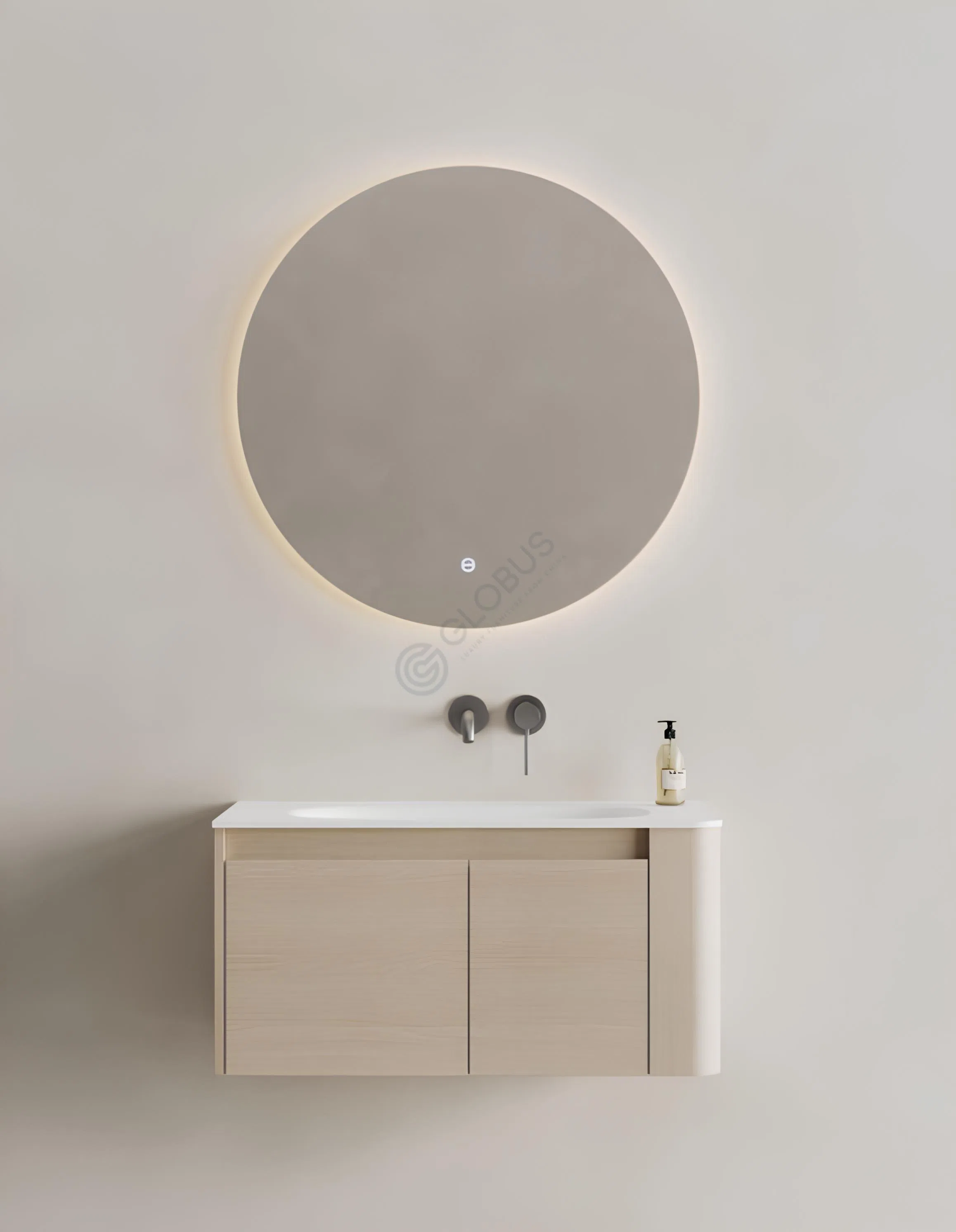 Настенное зеркало круглой формы с изящной подсветкой создаёт легкое и стильное настроение в любой комнате. Гладкая поверхность из эпоксидной смолы обеспечивает идеальную отражающую способность, подчеркивая современный дизайн изделия.
