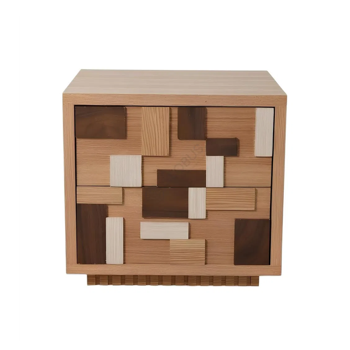 Дверцы оформлены мозаичным дизайном с контрастными вставками, задающими уникальный ритм. Такой визуальный эффект вписывается как в минималистичный, так и в более насыщенный интерьер, делая буфет универсальным выбором для столовой, кухни или гостиной.