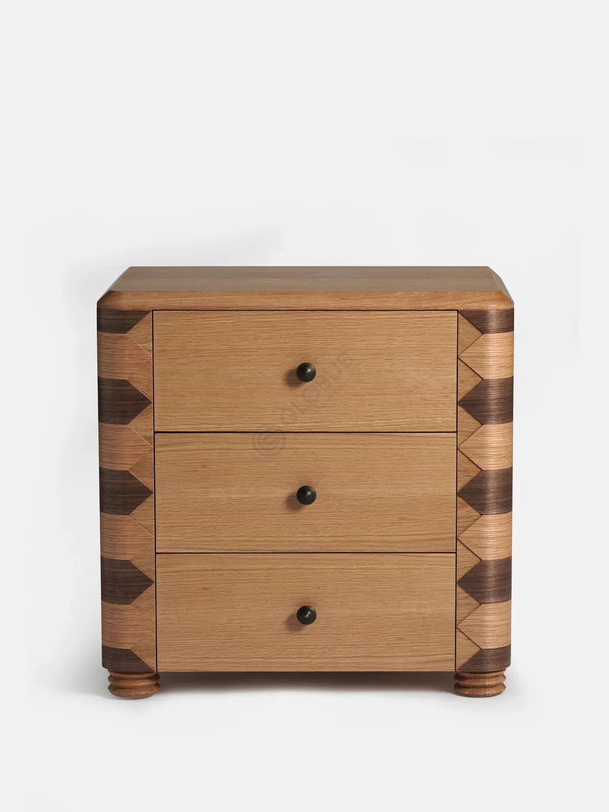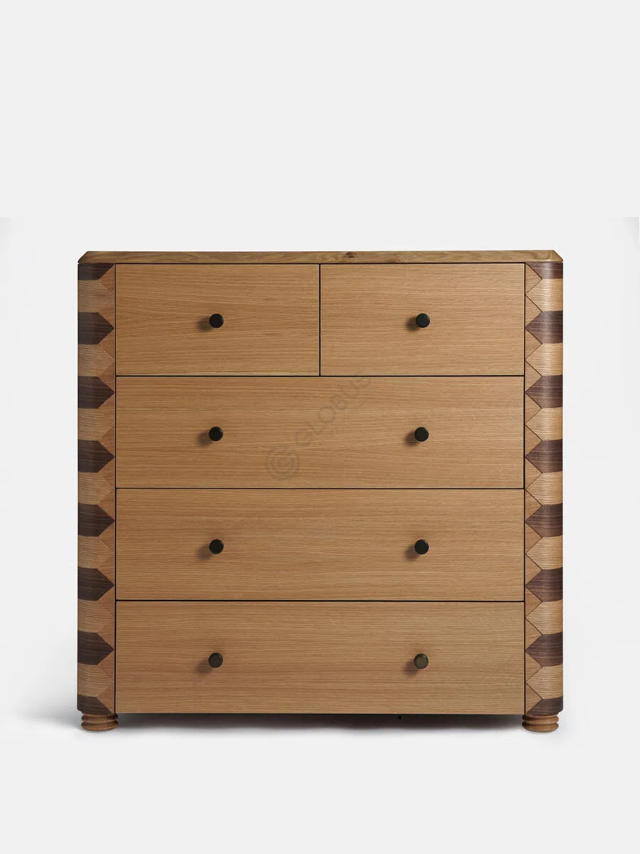 Основой конструкции служат натуральное дерево и фанера, что гарантирует долговечность и устойчивость. Фасады отделаны шпоном с приятной текстурой, которая создает теплую атмосферу и легко вписывается в любой интерьер.