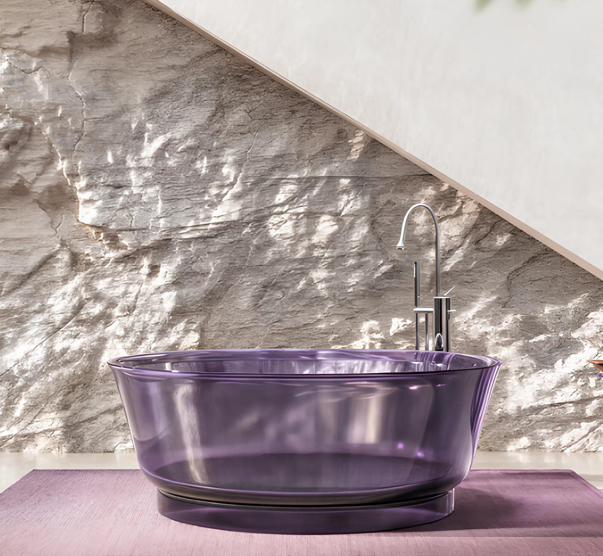 Эта современная ванна из искусственного камня создаёт атмосферу гармонии и элегантности в интерьере. Её плавные линии и округлая форма подчеркивают эстетичность минимализма, а материал обеспечивает прочность и долговечность.