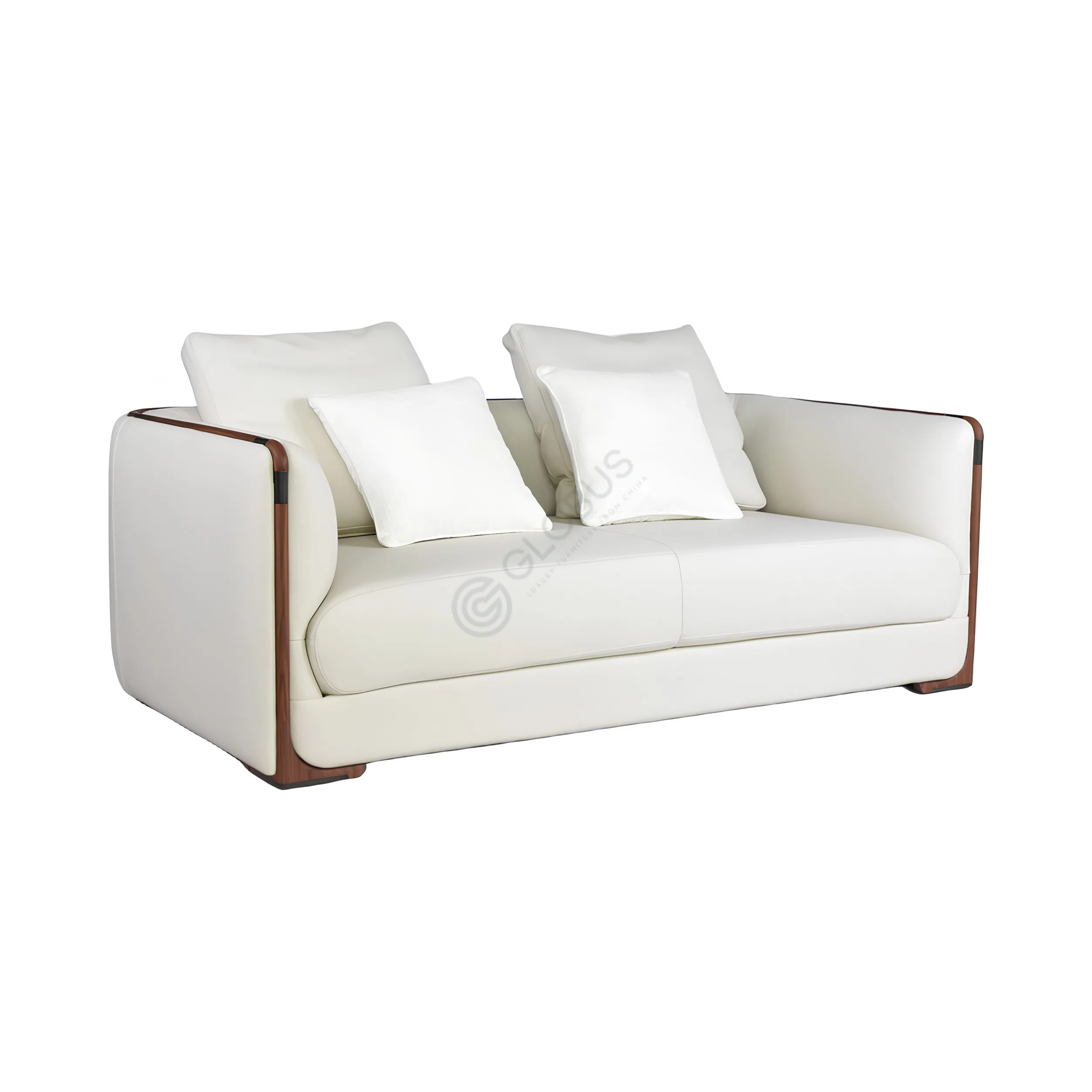 Кресло в современном стиле воплощает гармоничное сочетание строгих линий и мягких форм. Массив натурального дерева, обрамляющий корпус, подчеркивает индивидуальный характер и добавляет ощущение уюта. Лаконичные металлические детали из нержавеющей стали акцентируют современный облик модели и придают конструкции устойчивость.