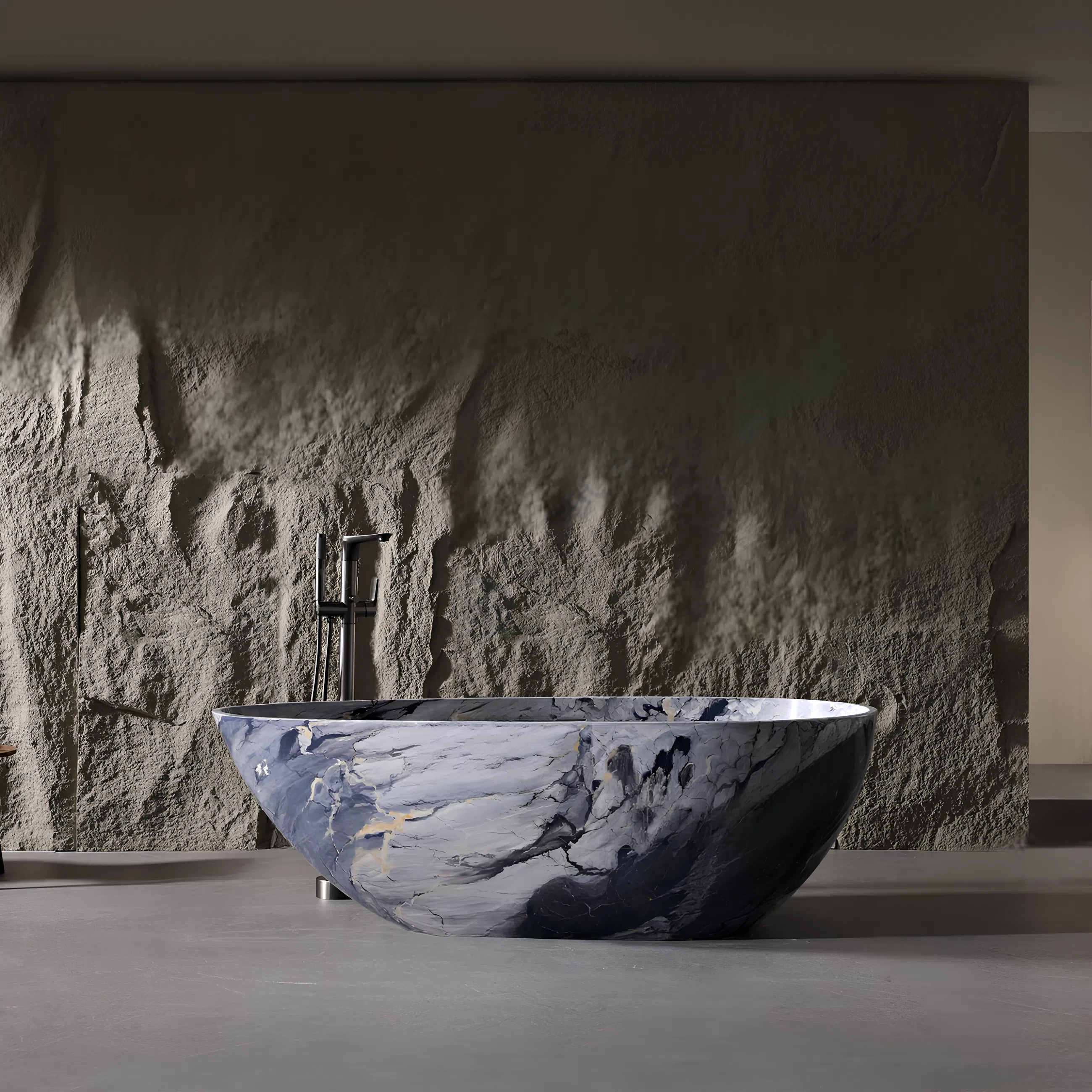Изящная ванна из искусственного камня — сочетание лаконичного дизайна и передовых технологий. Ее монолитная форма без лишних деталей подчёркивает современный стиль, делая акцент на простоте и элегантности. Гладкая поверхность приятно прохладна на ощупь и гармонично впишется как в просторное, так и в компактное помещение.