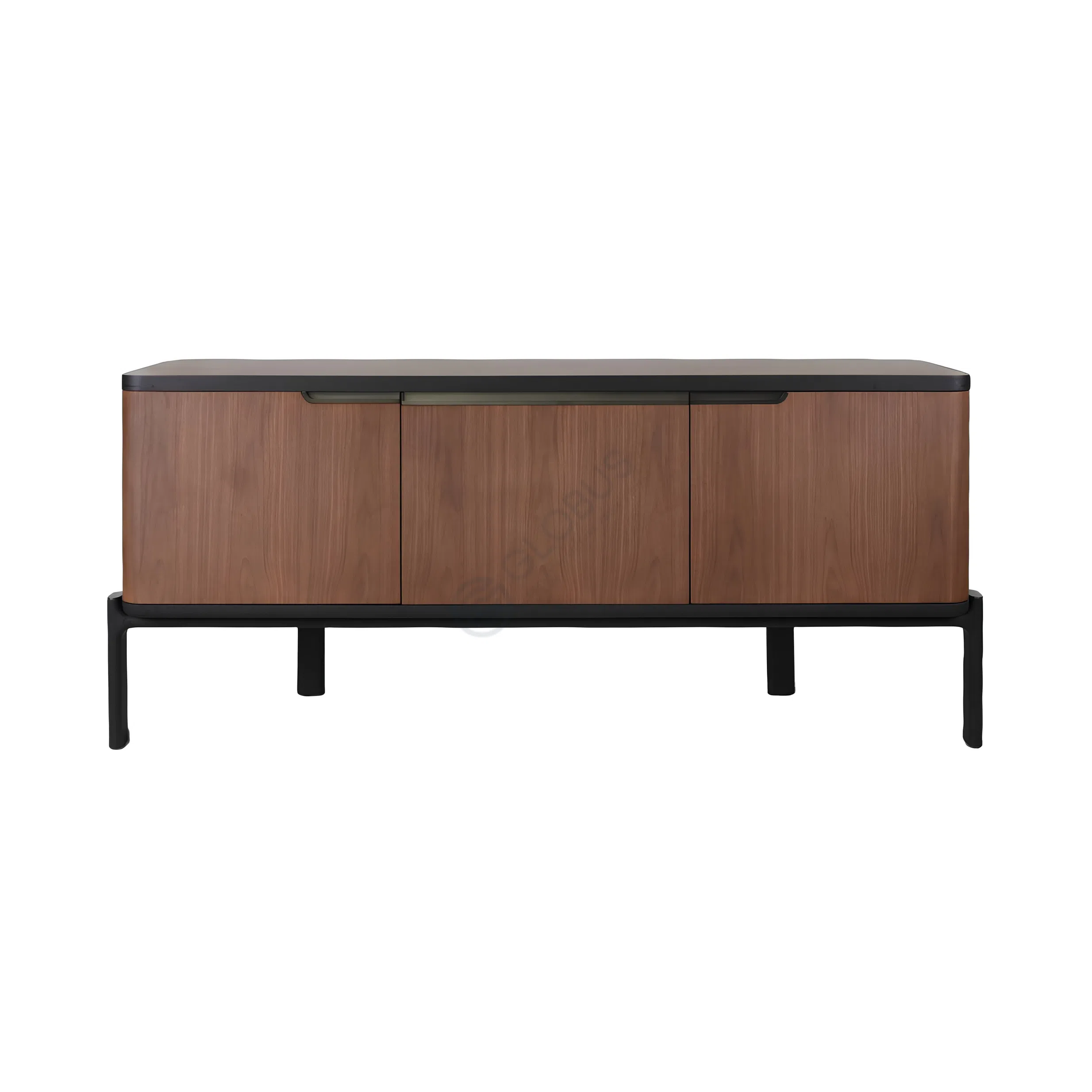 Консоль в современном стиле гармонично сочетает в себе лаконичность форм и притягательную текстуру натурального дерева. Каркас выполнен из древесины с отделкой шпоном, что подчеркивает глубокий цвет и плавные линии. Металлические детали из нержавеющей стали добавляют конструкции надежности и актуальности, а МДФ обеспечивает дополнительную устойчивость к износу.