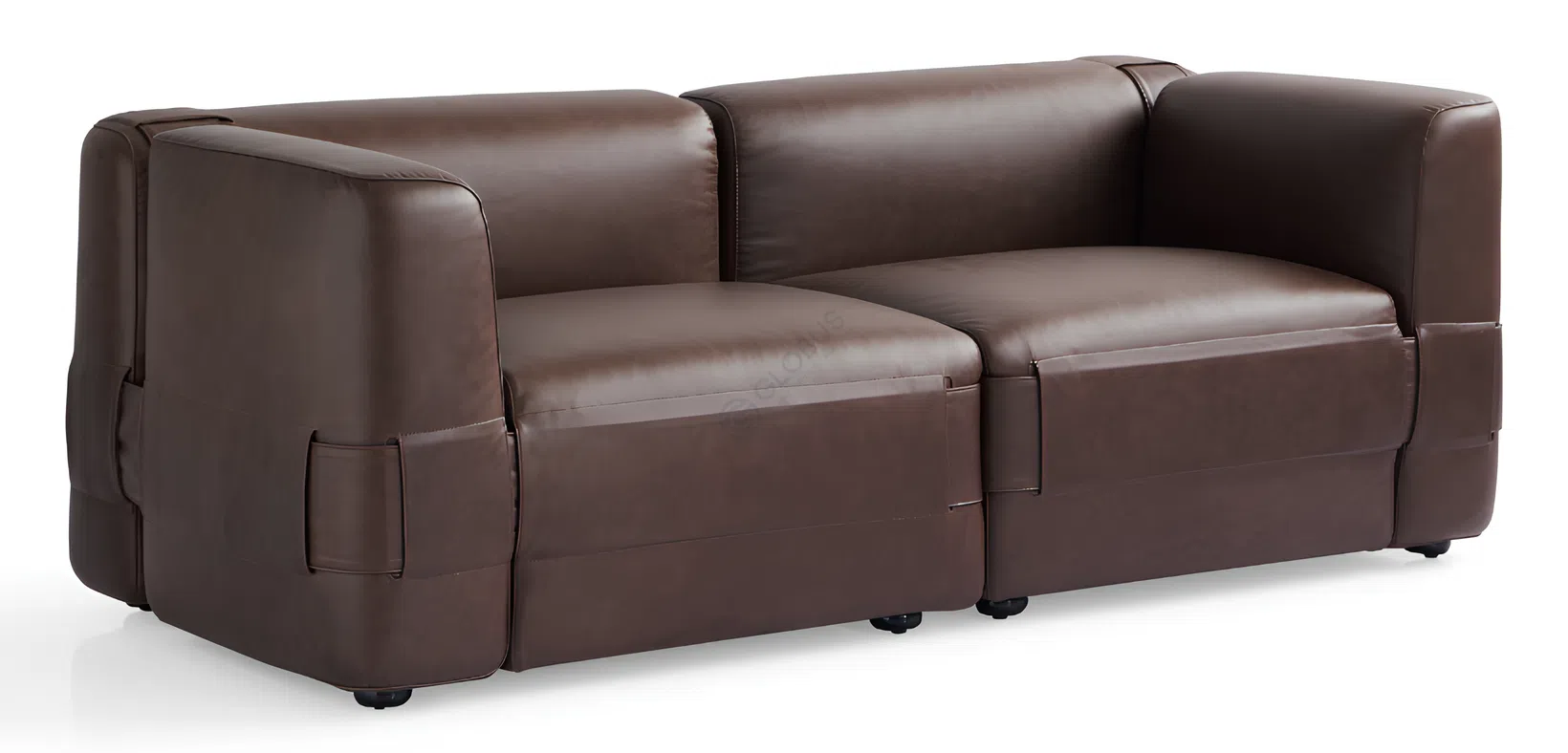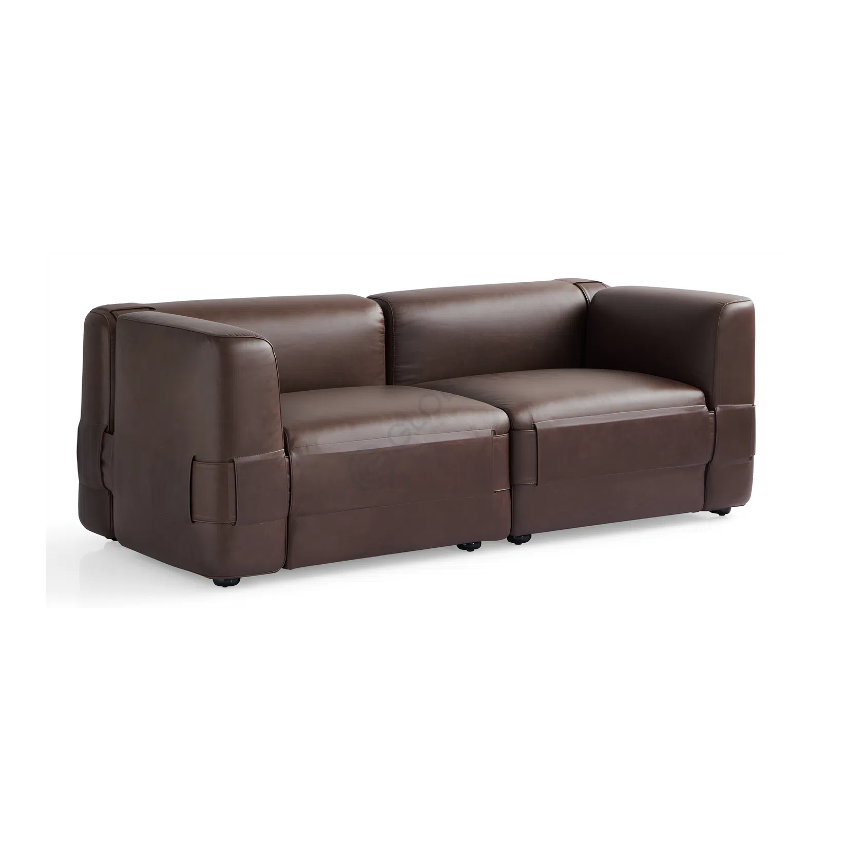Каркас изготовлен из сочетания натурального дерева и фанеры, что обеспечивает долговечность и надежность конструкции. Обивка из экокожи на микрофибре в сочетании с кожаными акцентами придает изделию эстетическую ценность и приятную текстуру. Темный насыщенный оттенок подчеркивает современный характер дизайна.