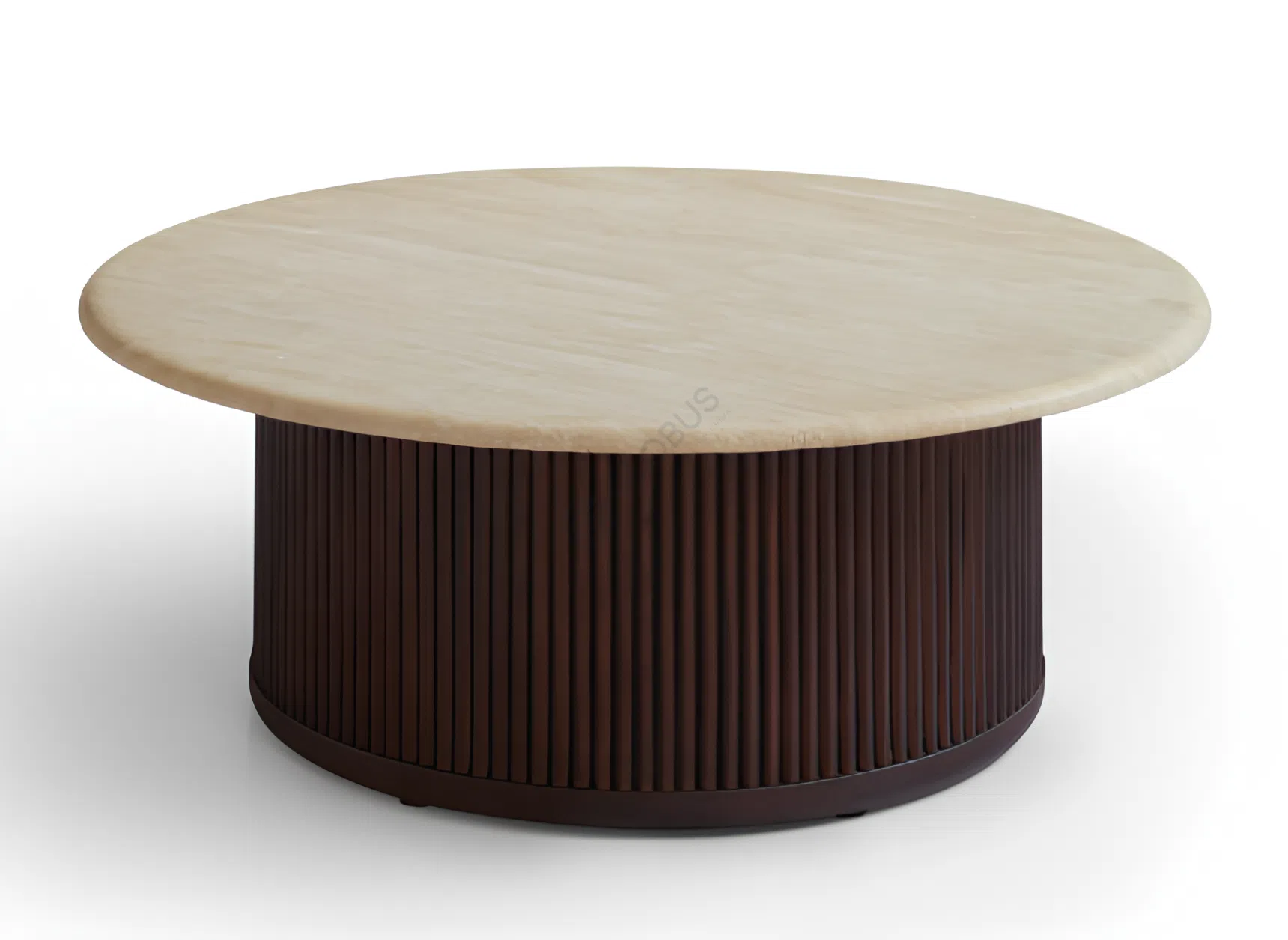 Тёплый оттенок натурального дерева добавляет уюта, а продольные рифления основания придают изделию дополнительную визуальную глубину. Благодаря использованию качественных материалов и тщательной отделке столик отличается прочностью, что делает его не только стильным элементом интерьера, но и практичным решением для ежедневного использования.